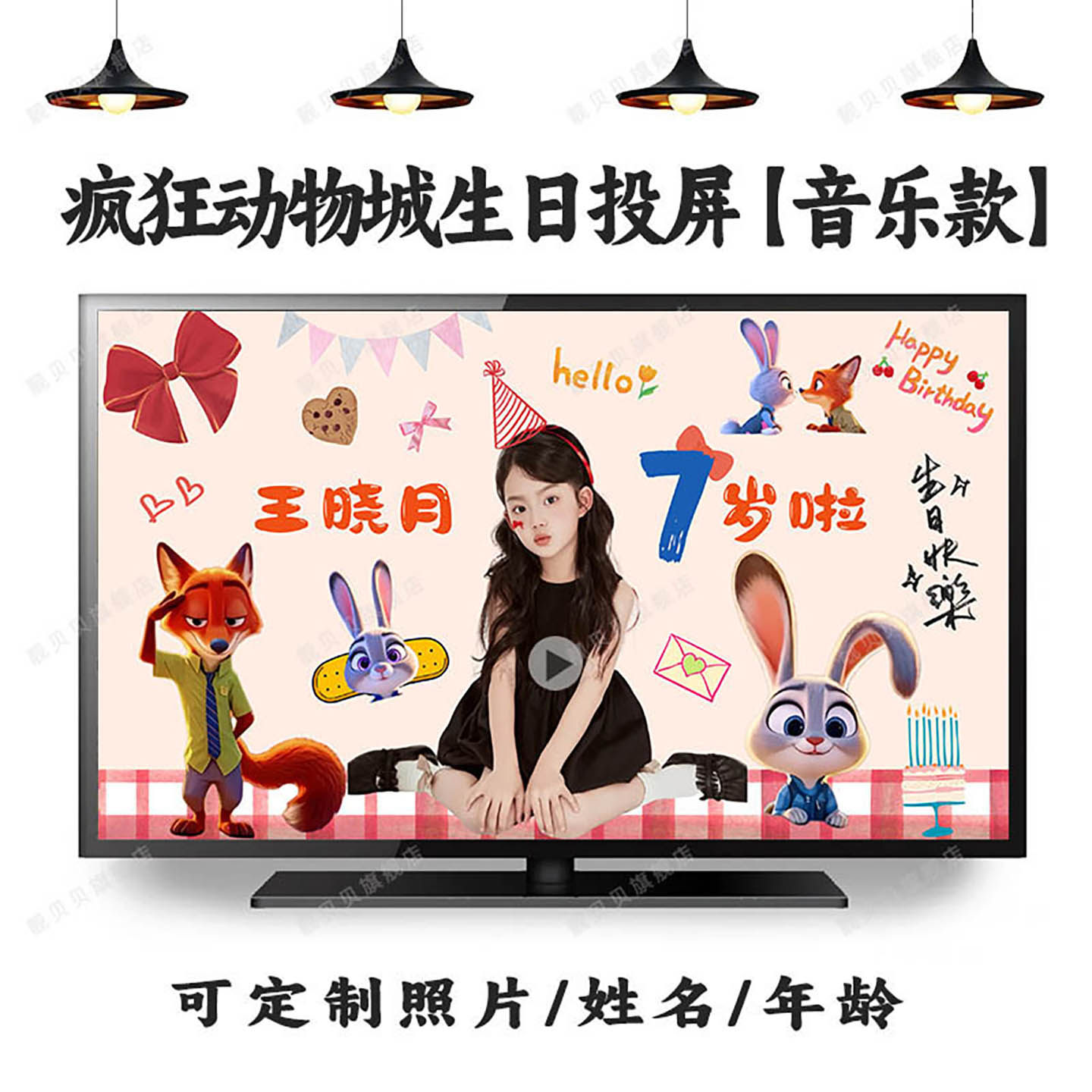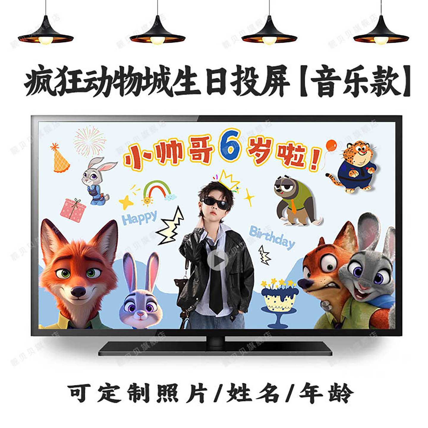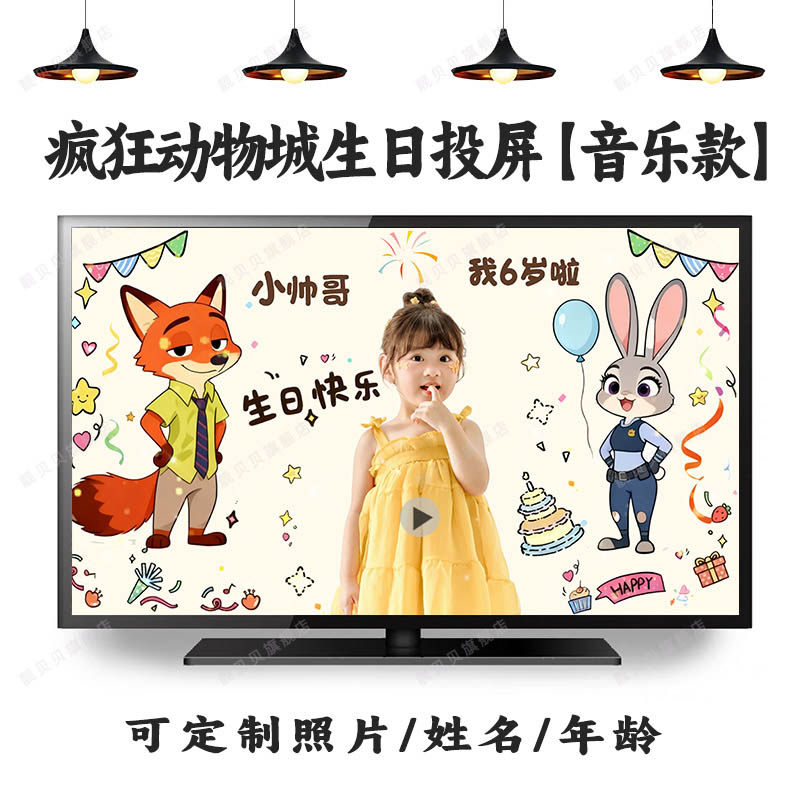迪士尼疯狂动物城周岁生日投屏视频图片定制尼克朱迪豹警官布置