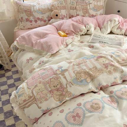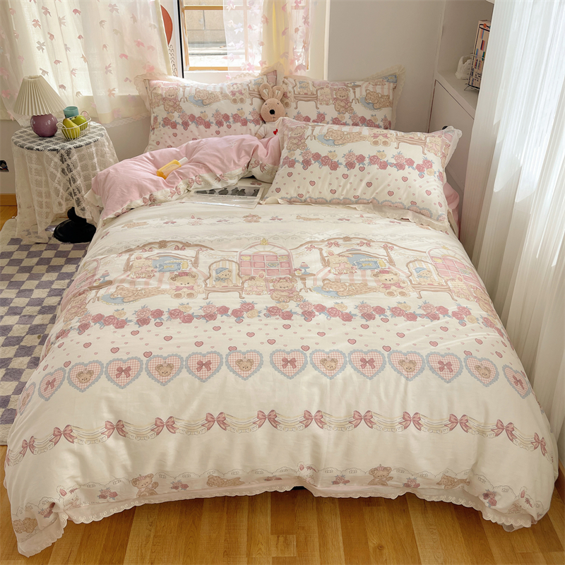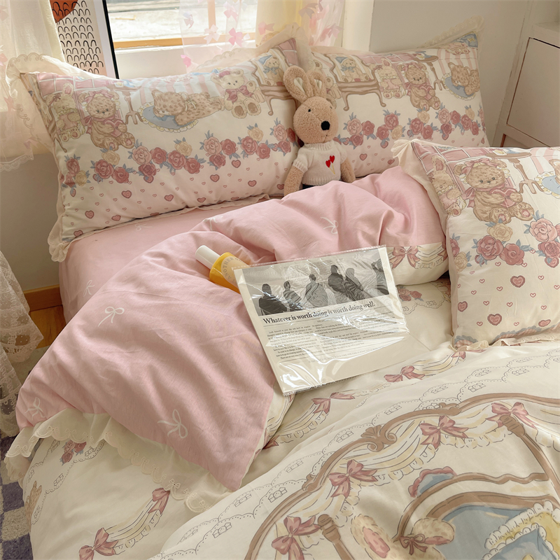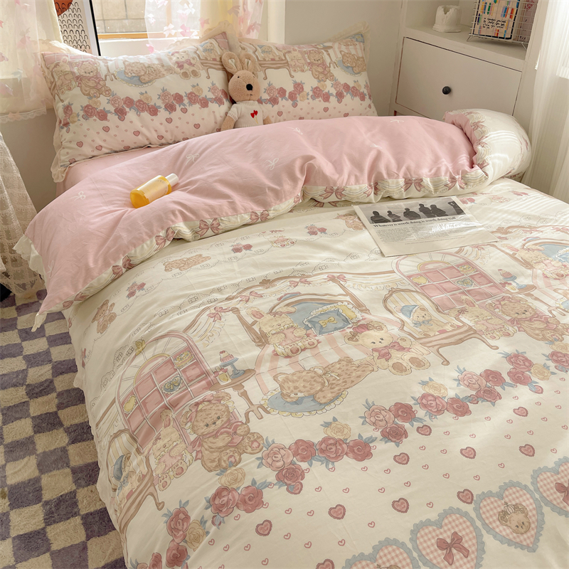 梨梦 Lolita可爱卡通小熊熊纯棉四件套全棉床单被套宿舍床上用品