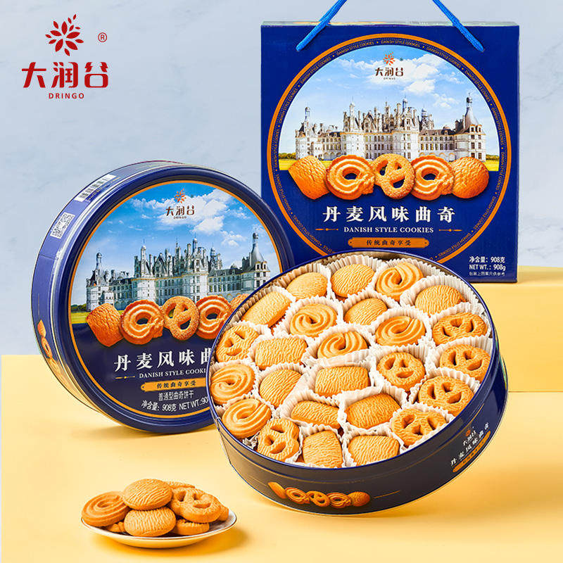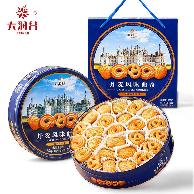 大润谷丹麦风味曲奇908g*2盒黄油奶香饼干铁盒装年货送礼零食礼包