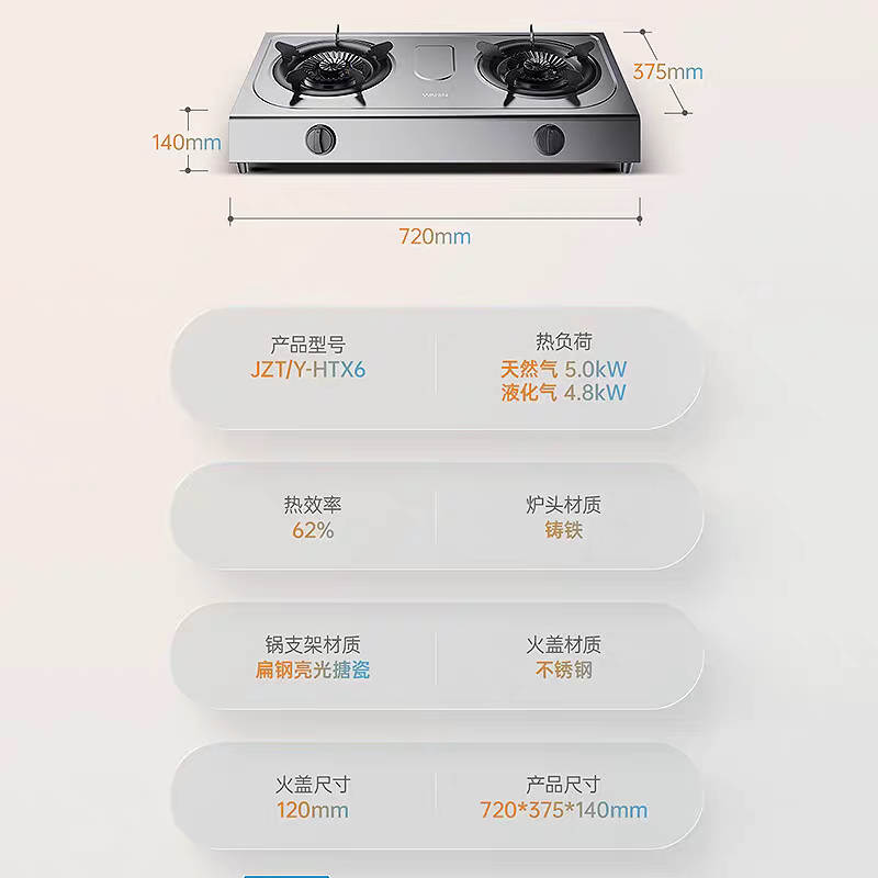 美的华凌燃气灶双灶家用煤气灶天然气灶具猛火灶液化气炉灶HTX6