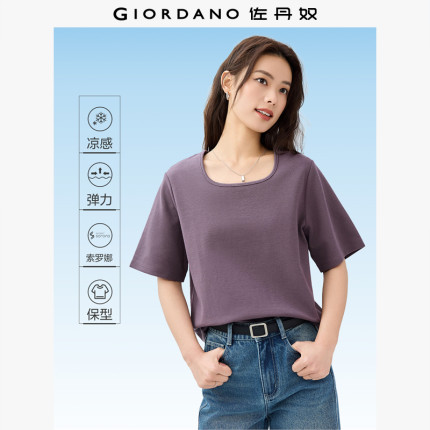 佐丹奴户外穿搭夏季黑科技凉感纯色简约风方领短袖T恤女13325234