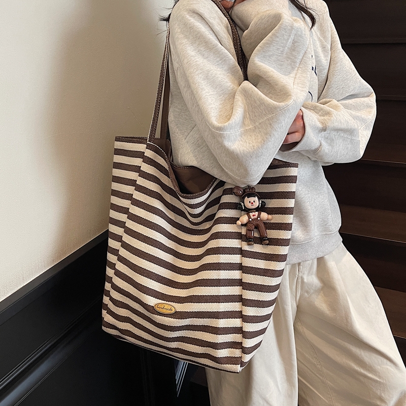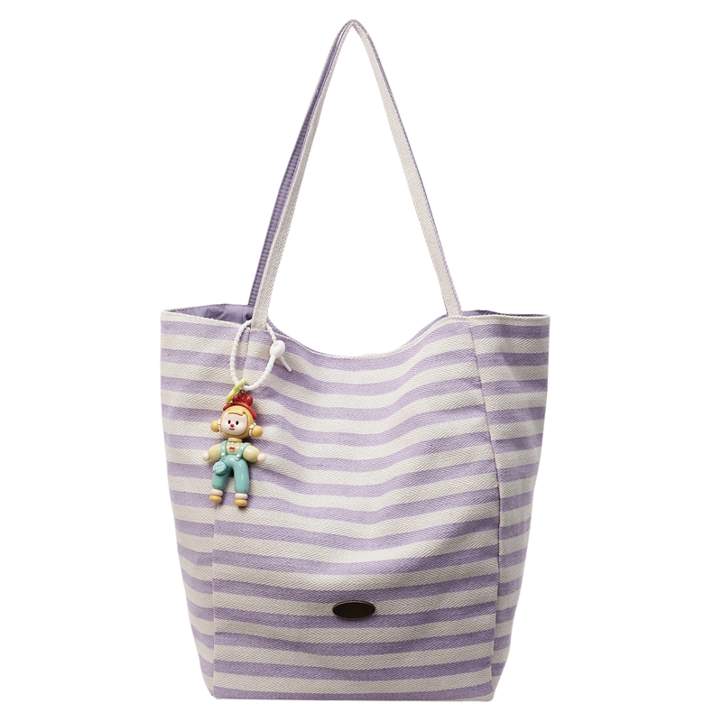 慵懒风松弛感紫色条纹帆布包