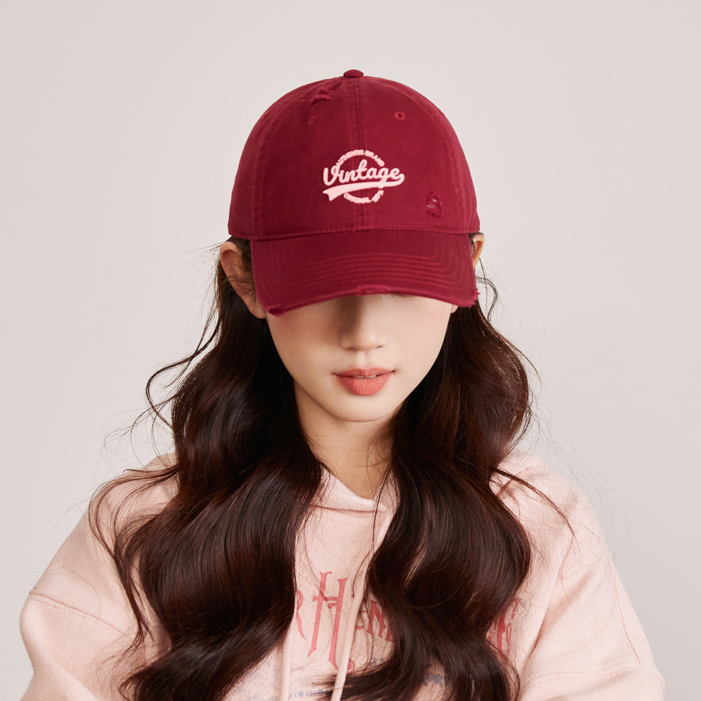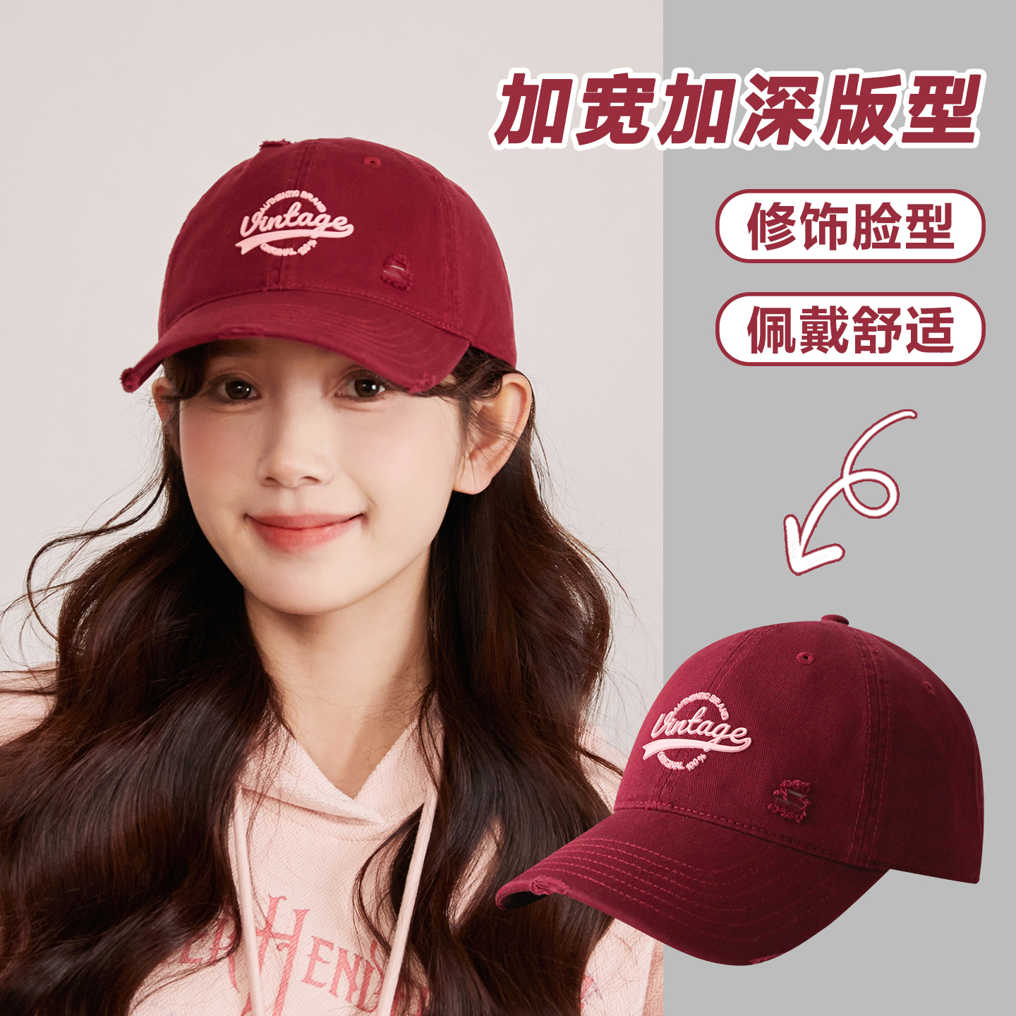 美式复古破洞做旧棒球帽