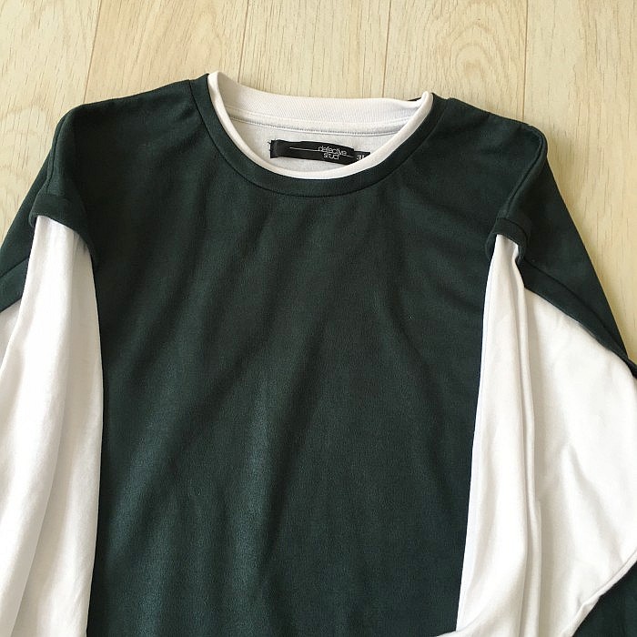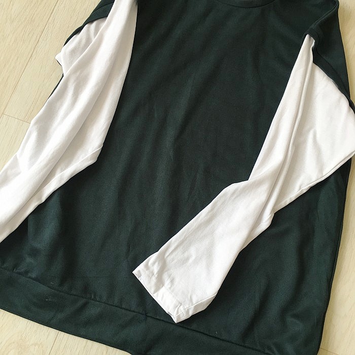 女装日单孤品圆领套头宽松中长款大板T拼接撞色长袖女春秋T恤上衣