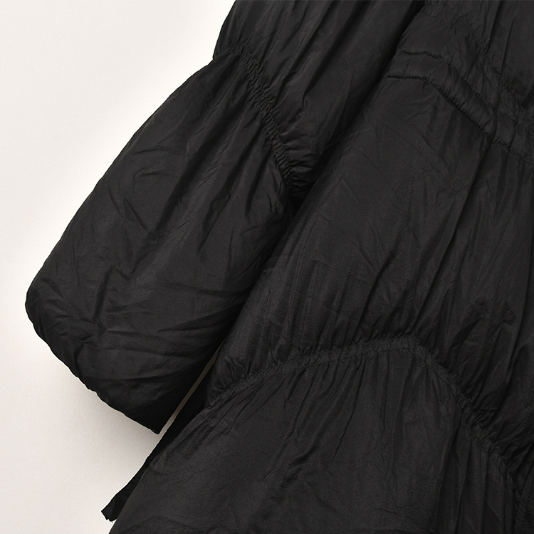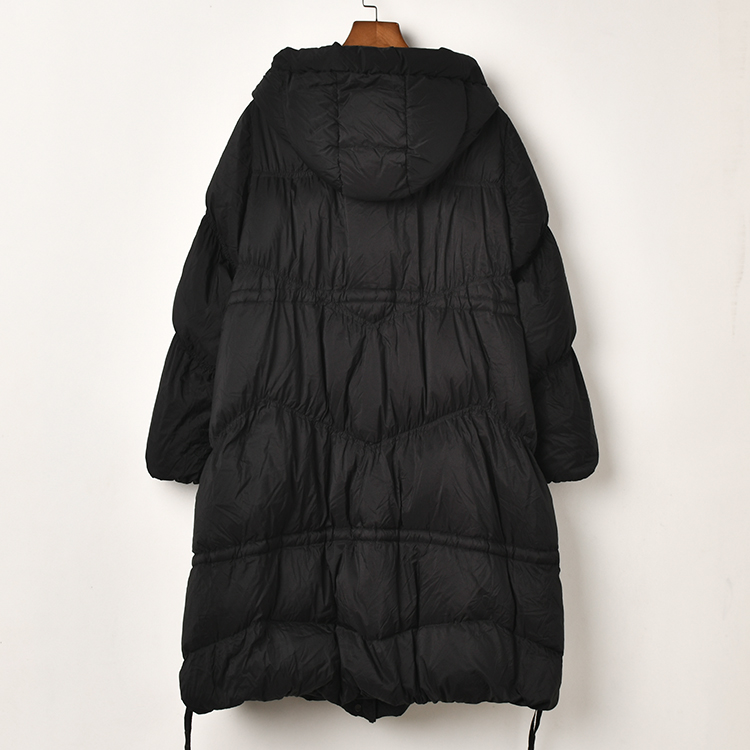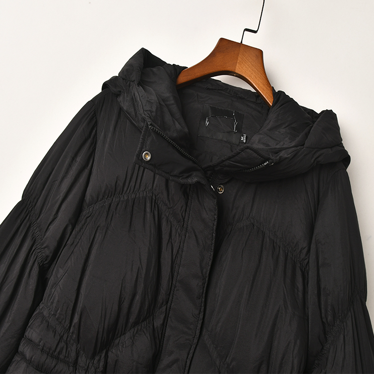 艾诺丝系列韩版时尚通勤设计感羽绒服宽松连帽黑色下摆抽绳上衣