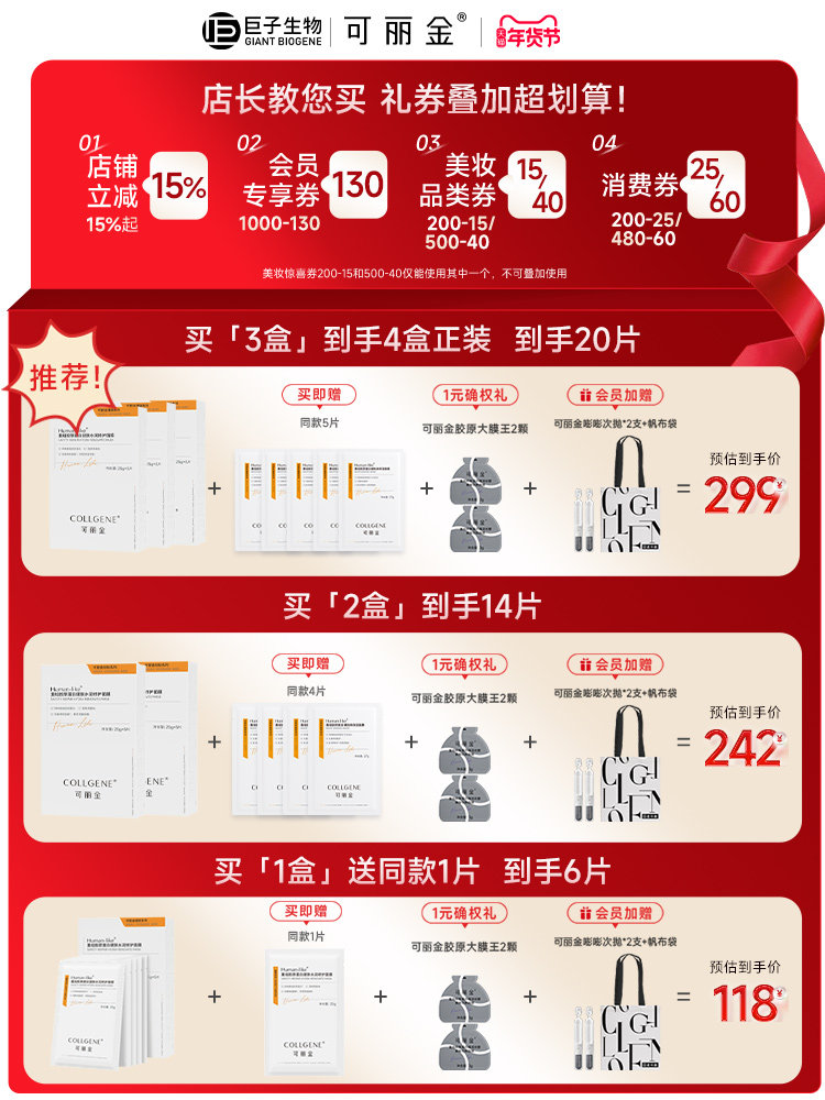 【新年礼物】可丽金重组胶原蛋白健肤高保湿面膜补水贴片旗舰店