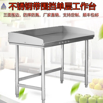 不锈钢工作台带围挡单层饭店奶茶店酒店家用打荷切菜三面围边桌子