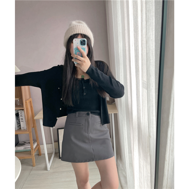 SA小树2025春夏可穿灰色西装半身裙女美式高腰a字半裙包臀短裙子