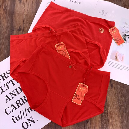 鹿人莫代尔女内裤大红色本命年无缝高弹裸感无痕中腰三角内裤