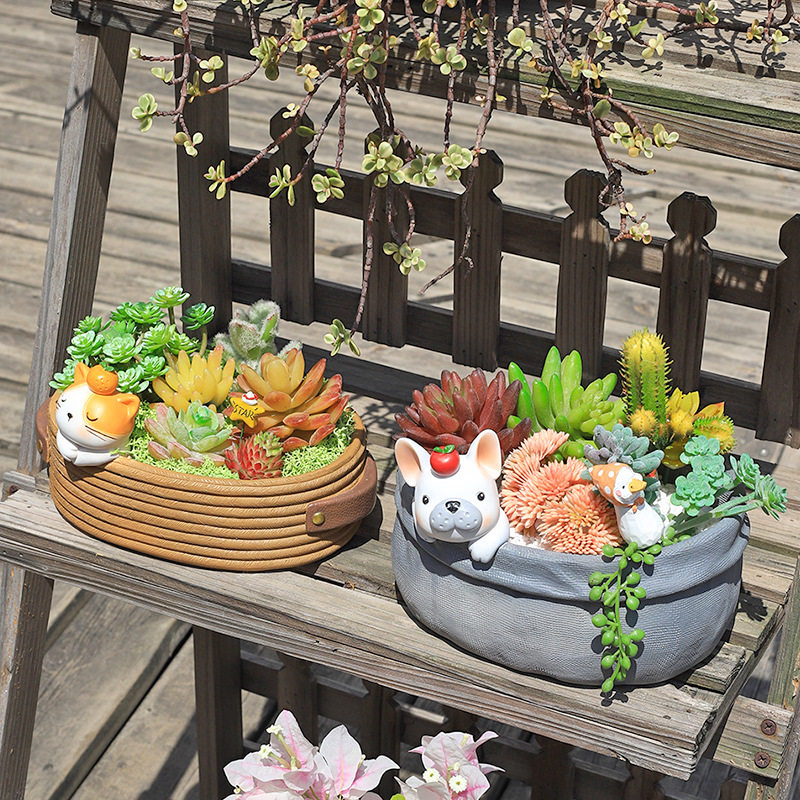 创意萌宠大口径花盆卡通小动物收纳盘小美庭院多肉植物装饰花盆