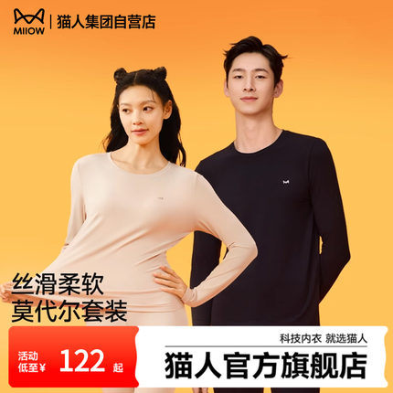 【莫代尔高弹】猫人男女同款保暖内衣套装秋衣秋裤新款薄款打底衣
