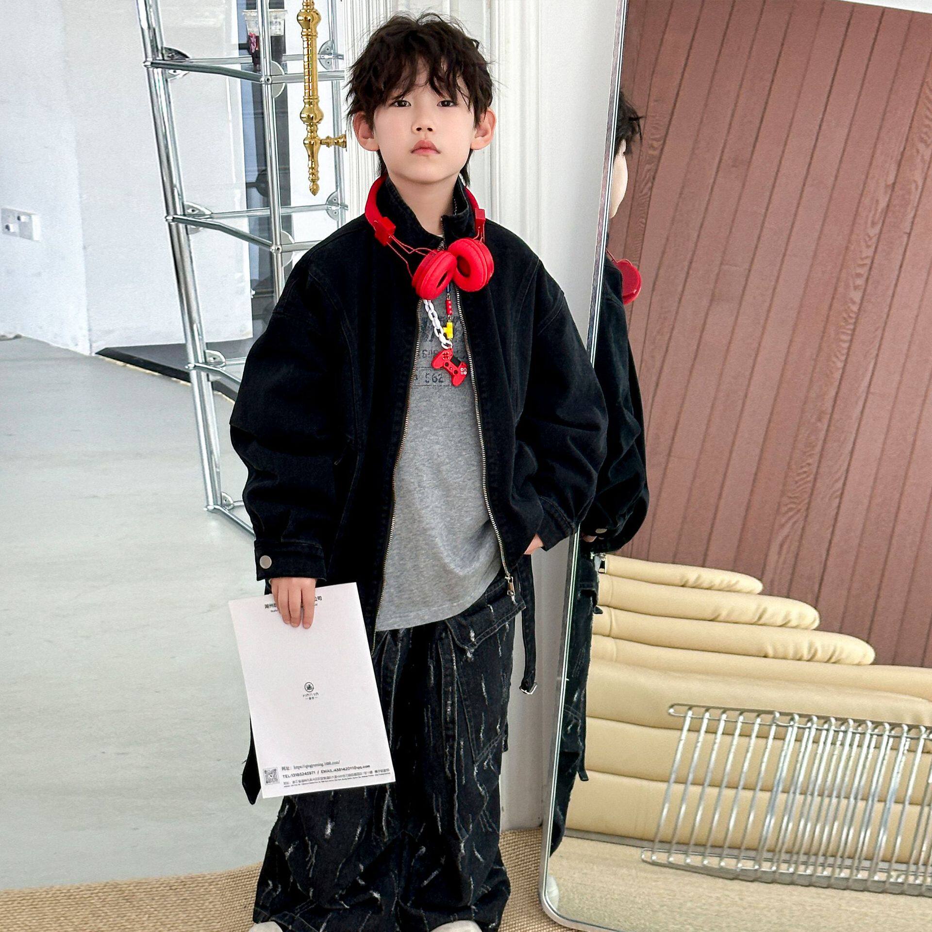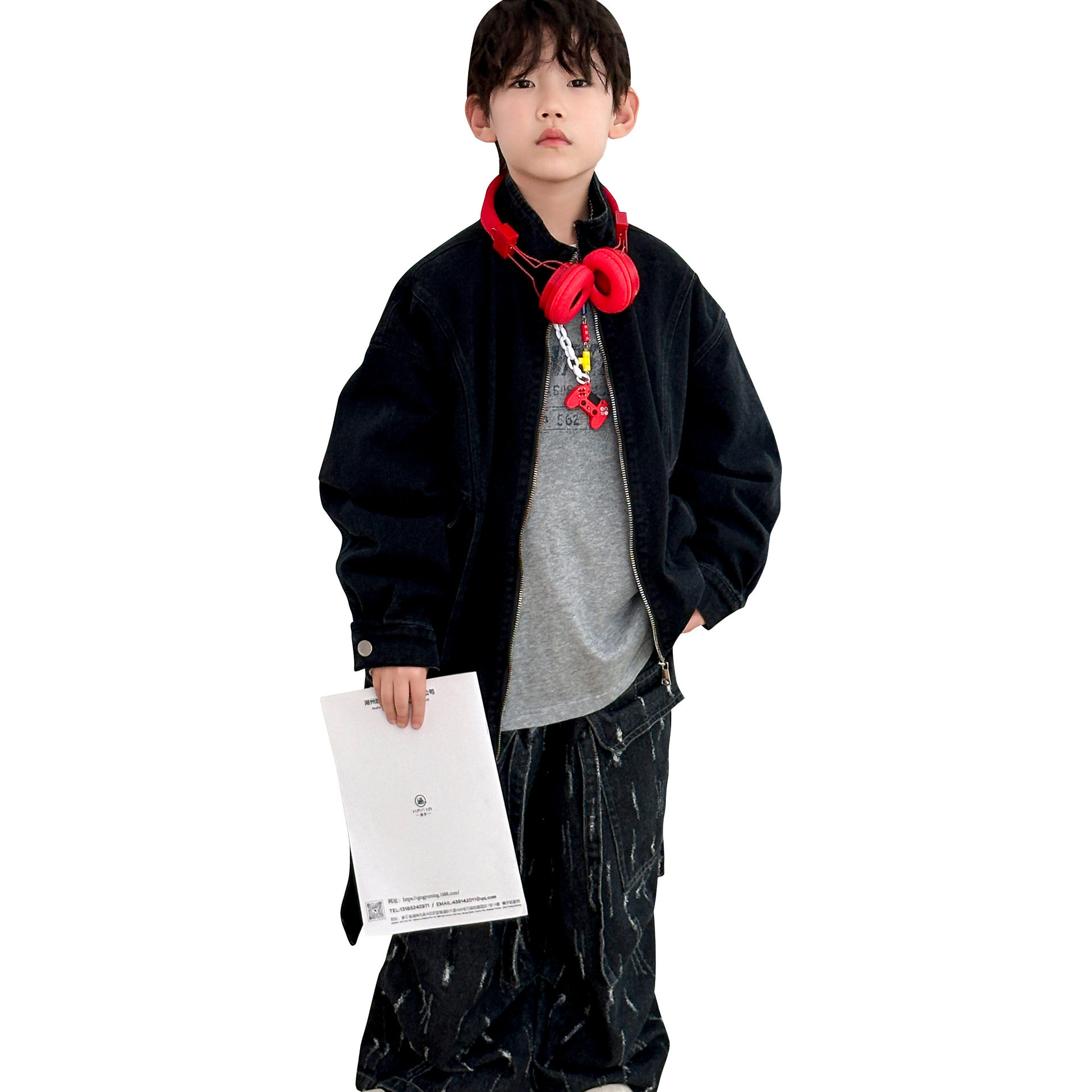 男童美式高街牛仔外套秋款2025新款儿童宽松夹克春秋款牛仔衣
