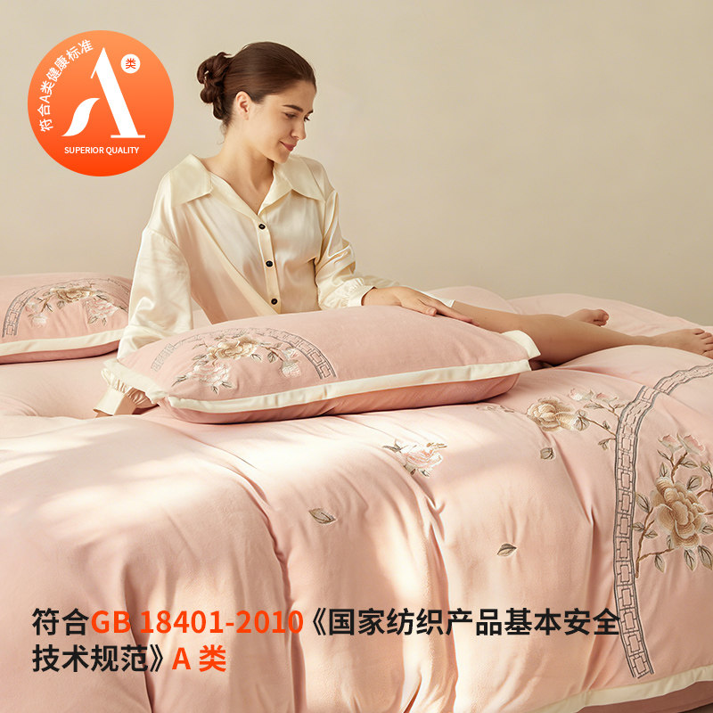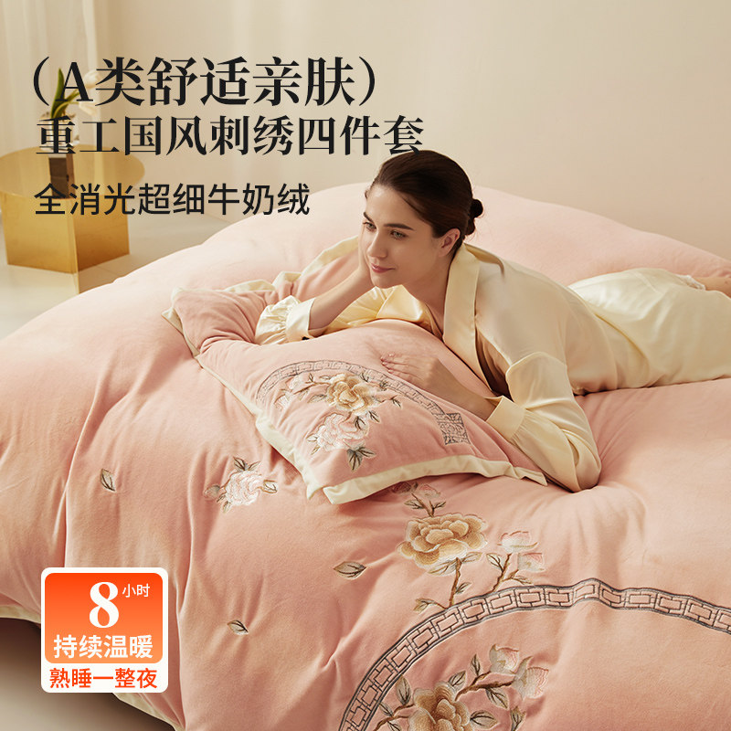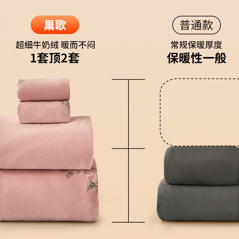 巢歌A类刺绣牛奶绒四件套秋冬加绒防静电加厚双面保暖珊瑚绒套件