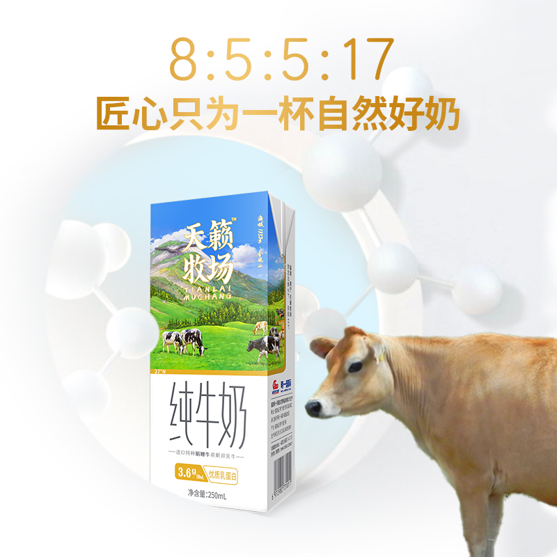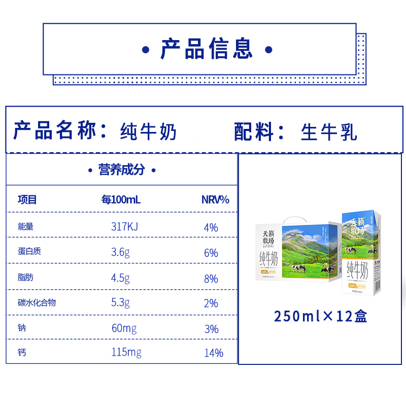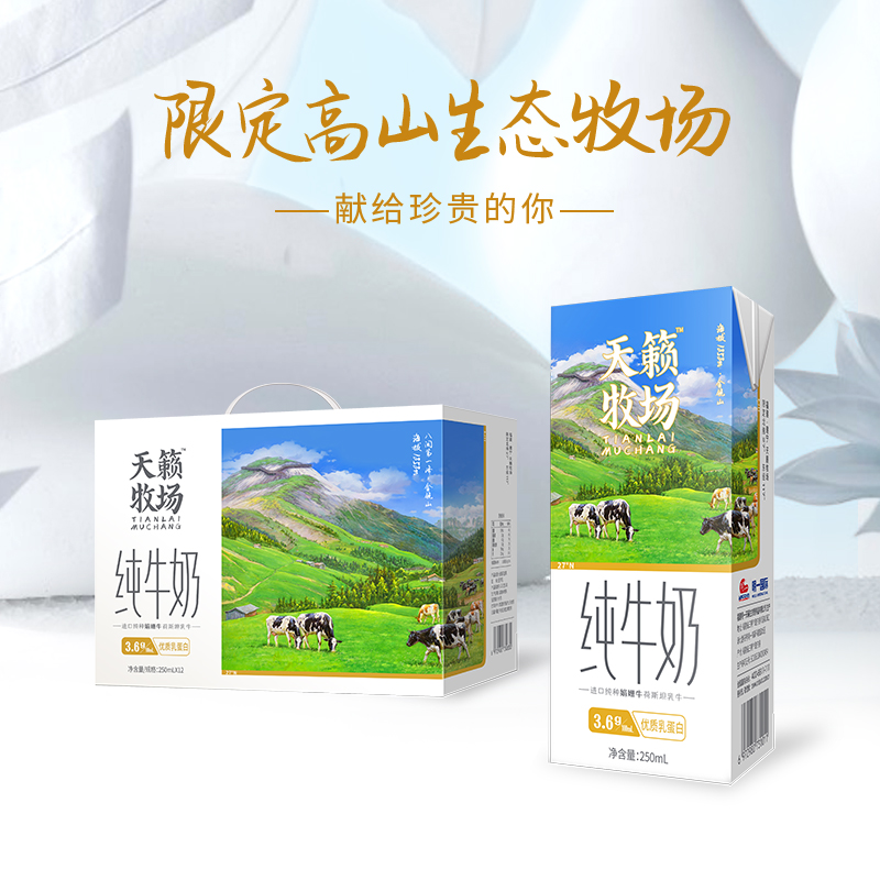 明一纯牛奶 3.6g优质乳蛋白250ml×12盒娟姗牛和荷斯坦牛营养早餐