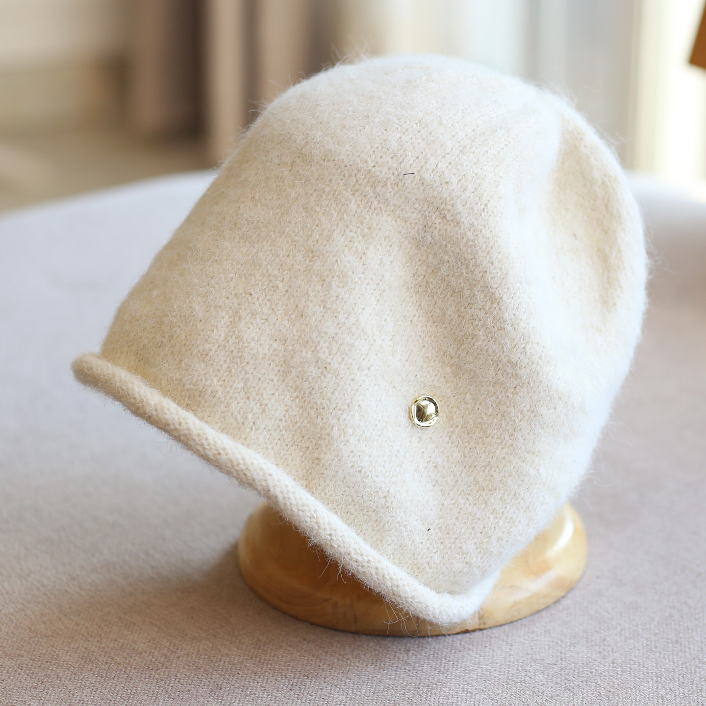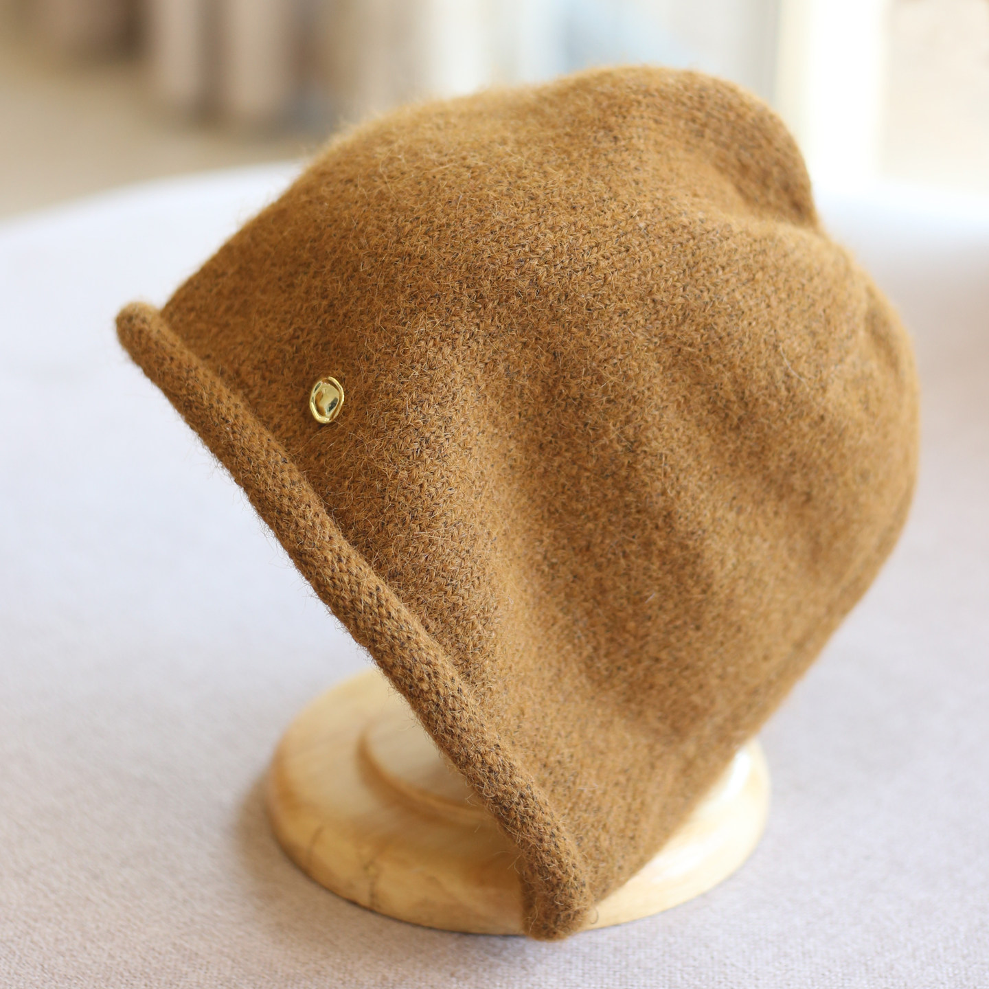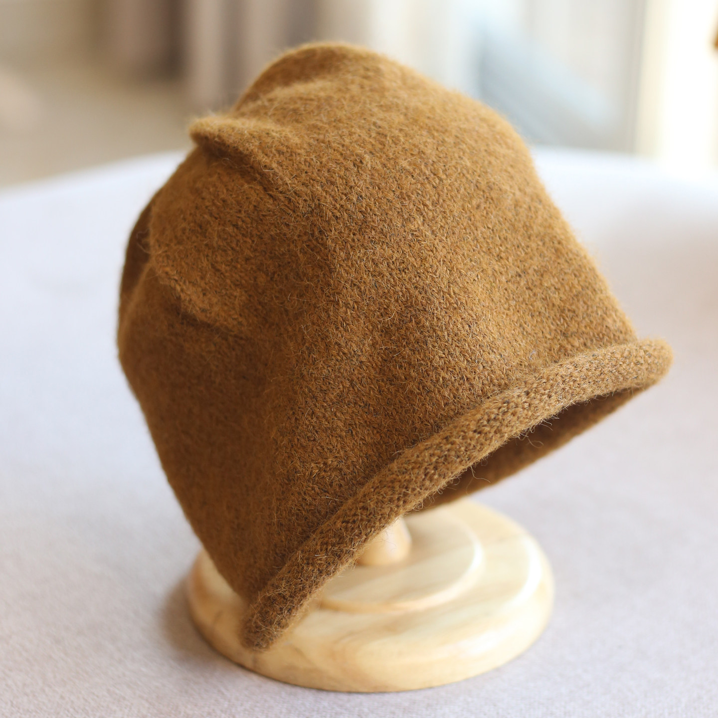 日系卷边短款堆堆帽秋冬羊毛混纺