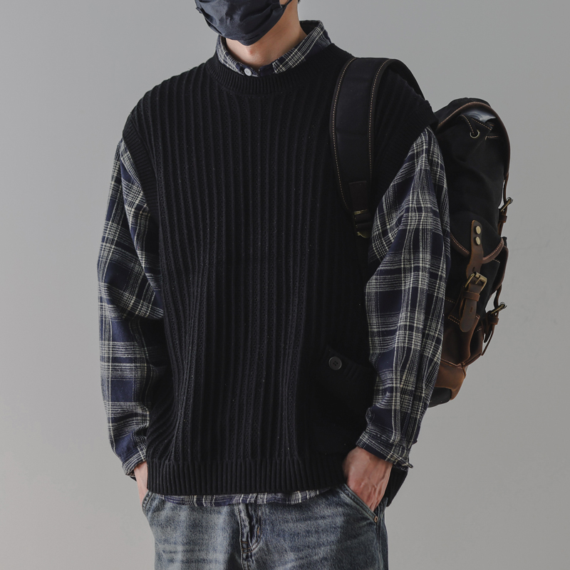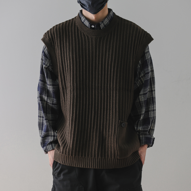高级感针织马甲男秋冬季外套潮牌上衣针织衫坎肩套头无袖毛衣加厚