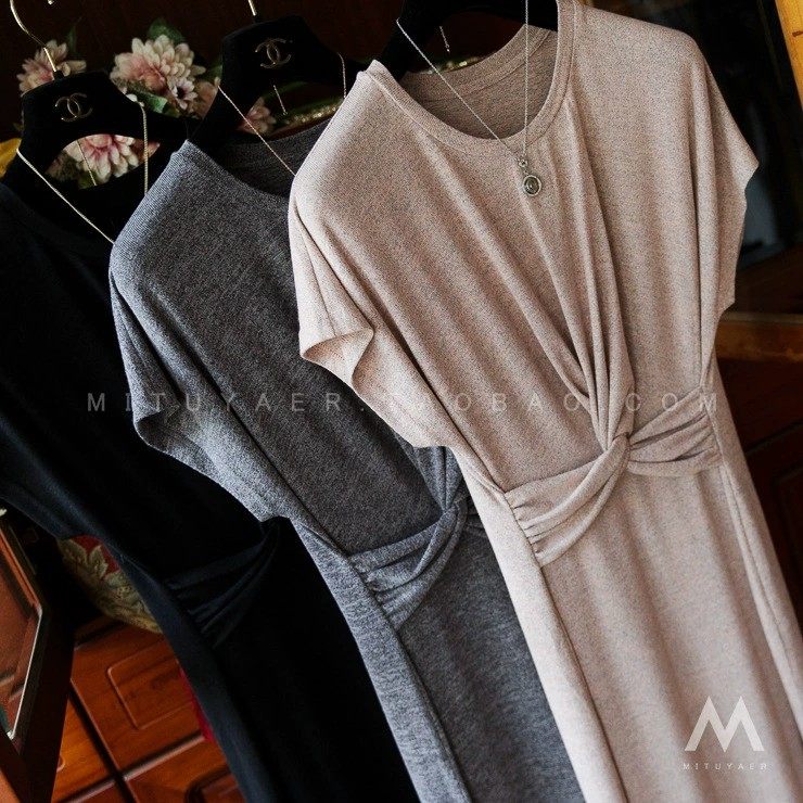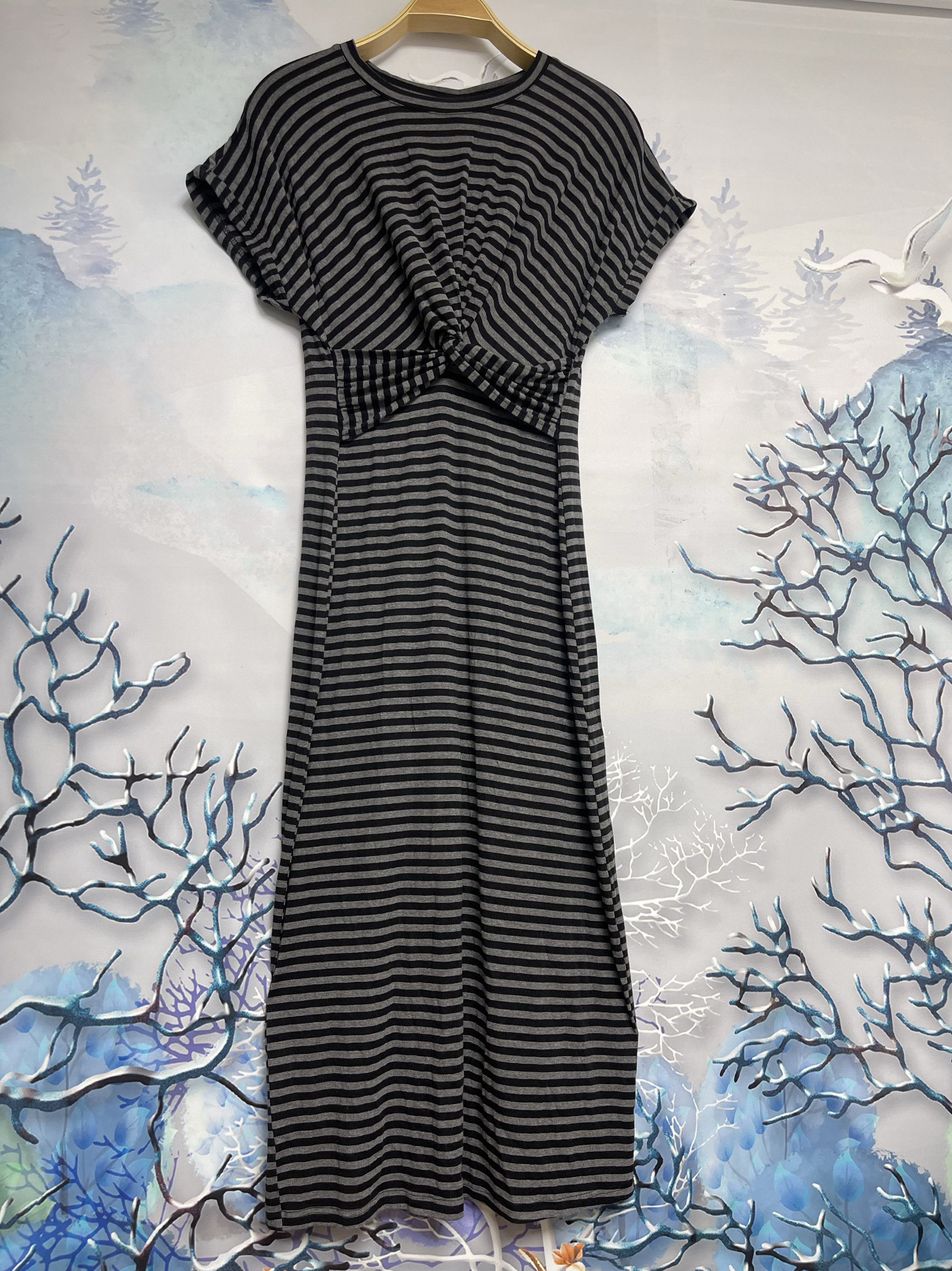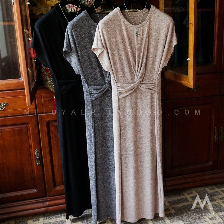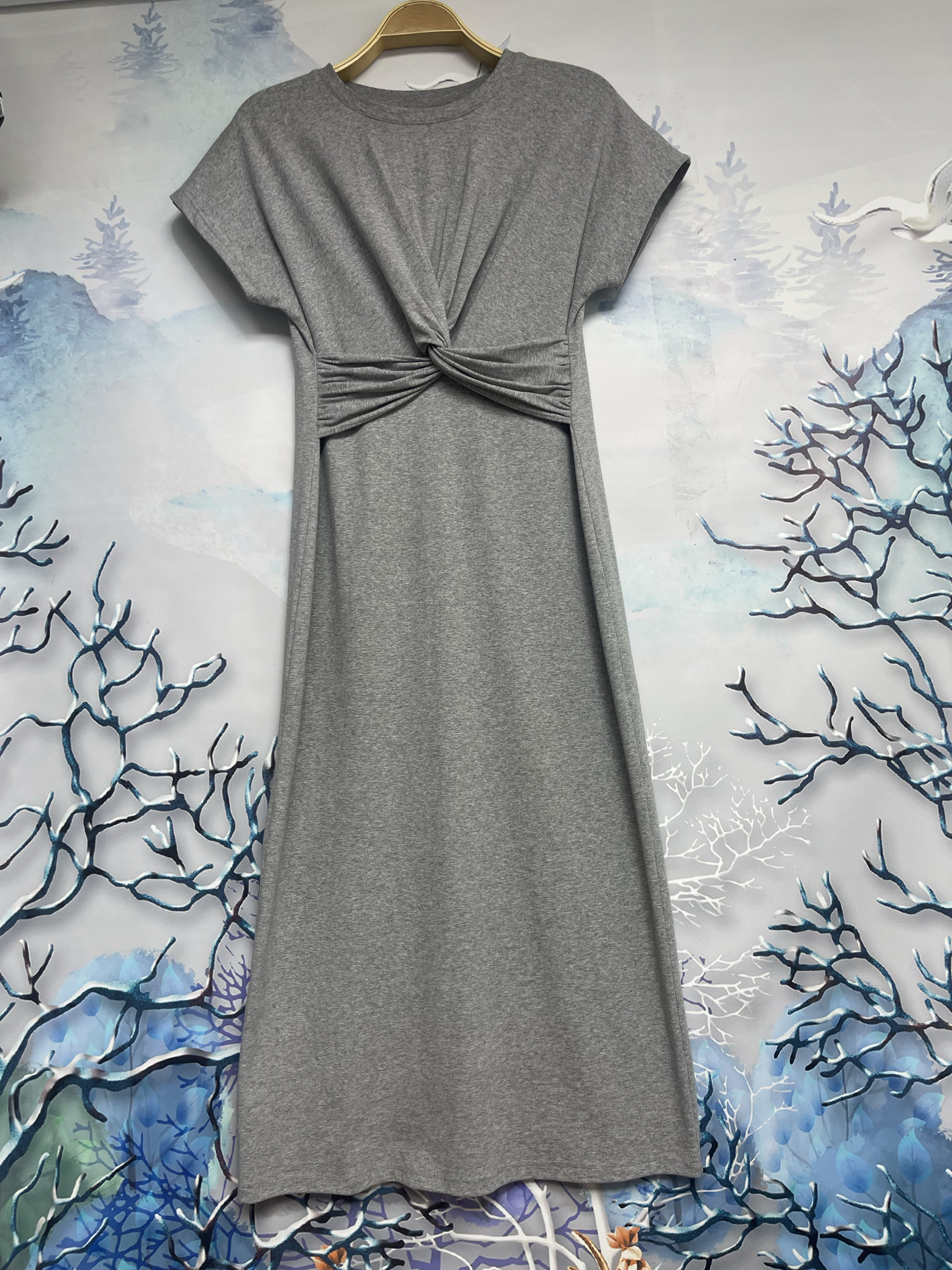 夏装25新款修身T恤显瘦包臀连衣裙莫代尔休闲长裙交叉收腰打底裙
