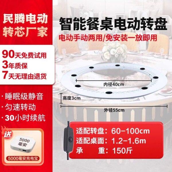 民腾盘转圆餐桌电动转盘底座家用饭店静音自动遥控旋转圆盘转桌器
