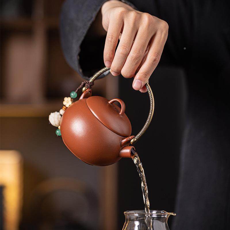 原矿紫砂圆器提梁壶复简约泡茶壶功量夫茶具过滤古大容EBU壶茶壶