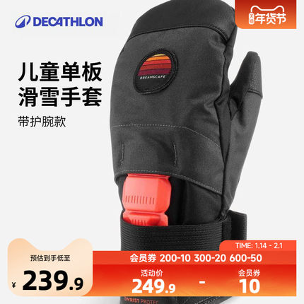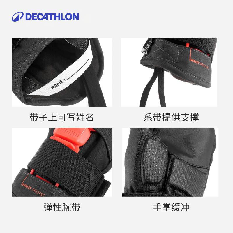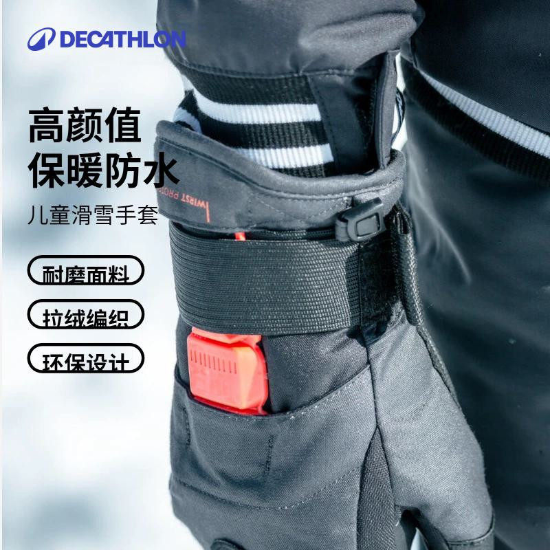迪卡侬儿童单板滑雪手套带护腕款柔软保暖防水耐磨弹性腕带KIDO