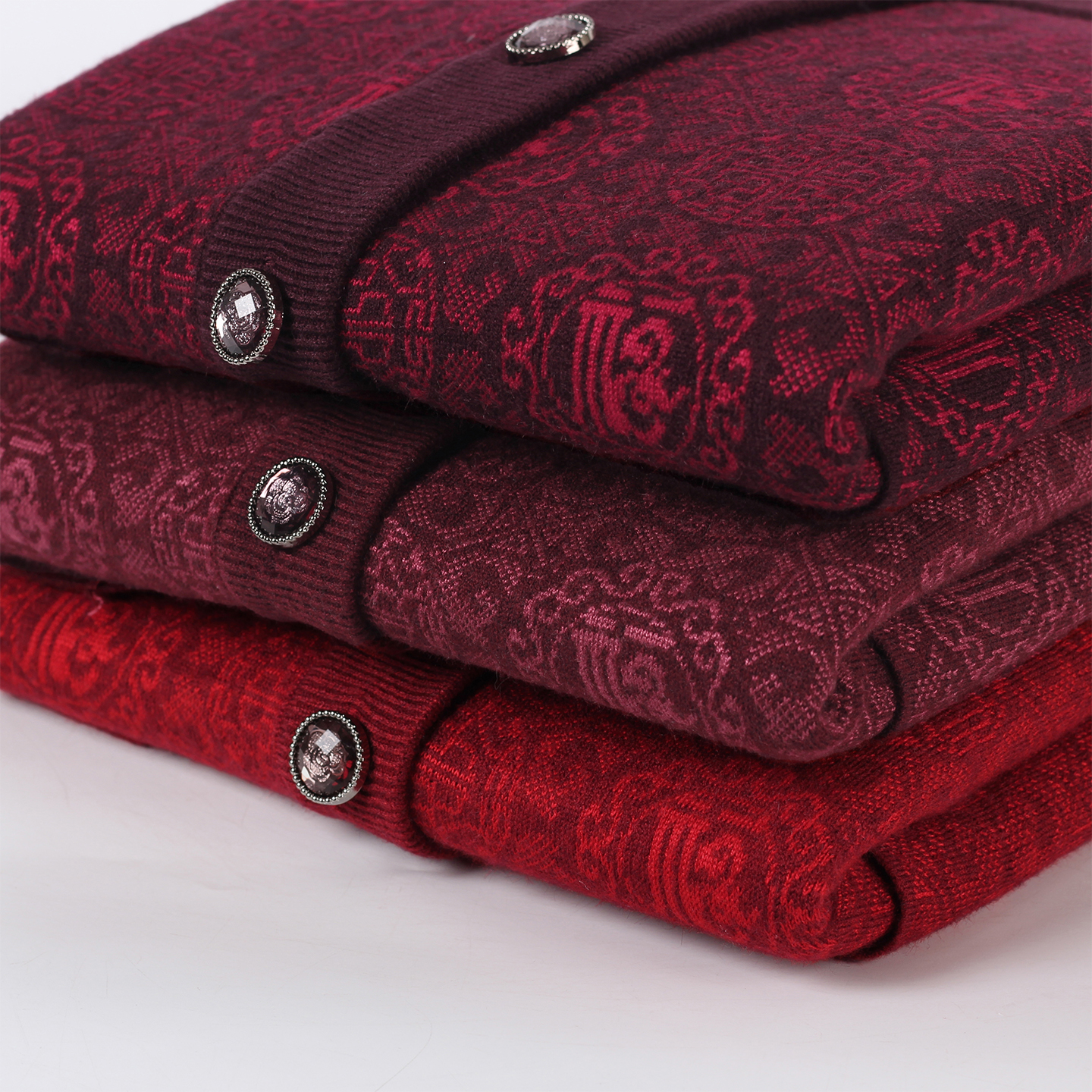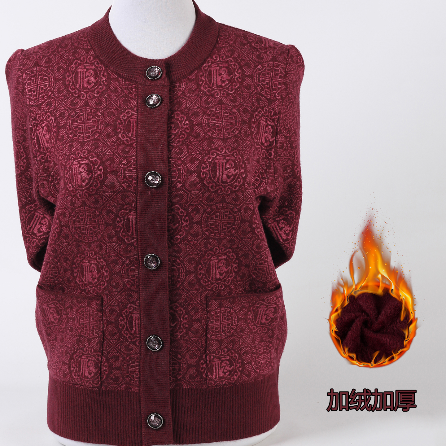 中老年人秋冬女装开衫加绒外套奶奶圆领针织衫加厚宽松保暖上衣服