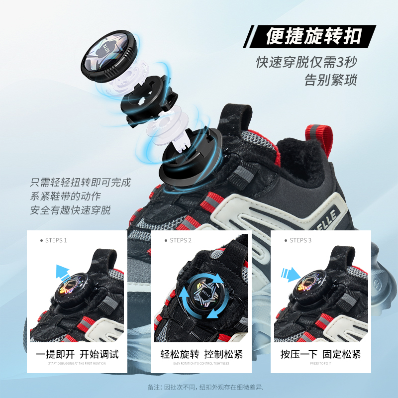 百丽童鞋儿童加绒冬季休闲运动鞋子男女童棉鞋加厚保暖户外暴走鞋