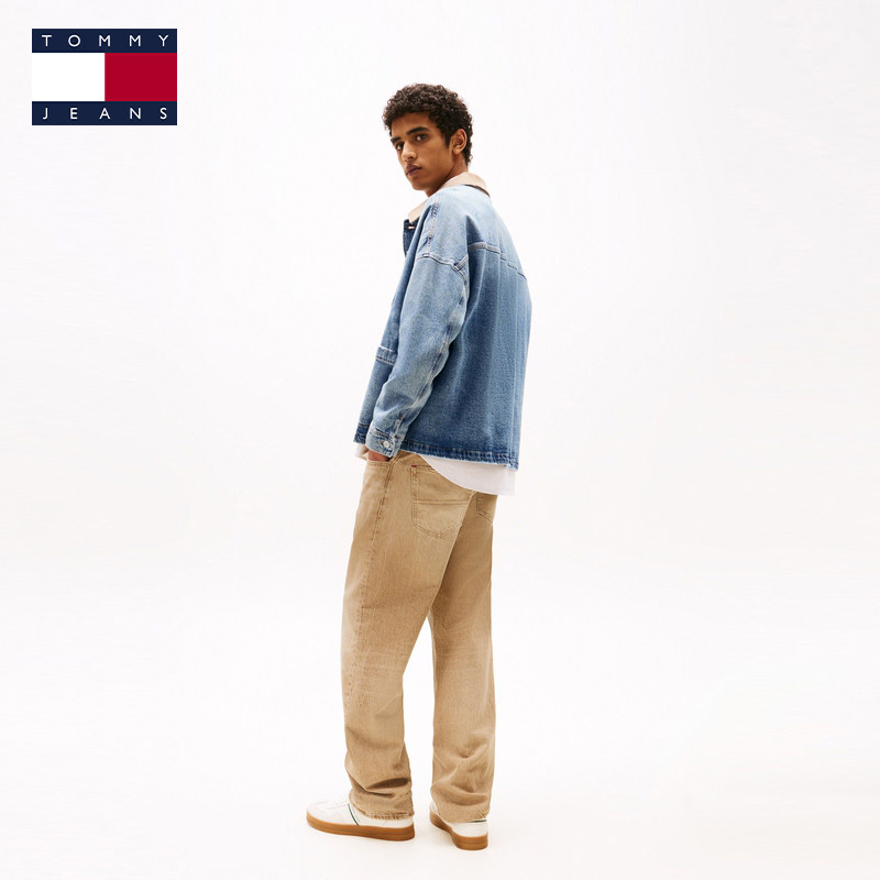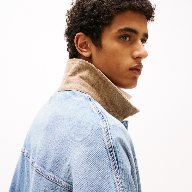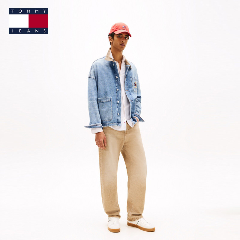 Tommy男撞色翻领底特律牛仔外套