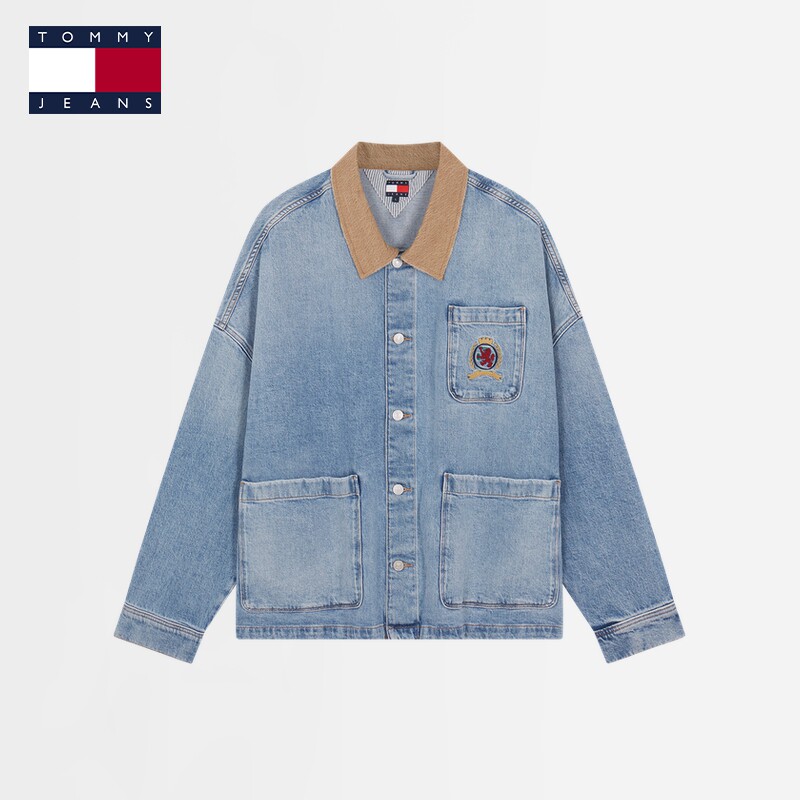 Tommy25春夏新款男女美式复古工装风撞色翻领宽松底特律牛仔外套