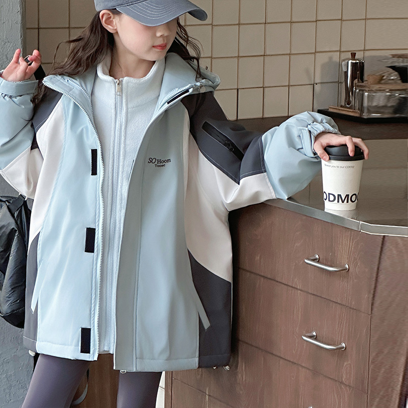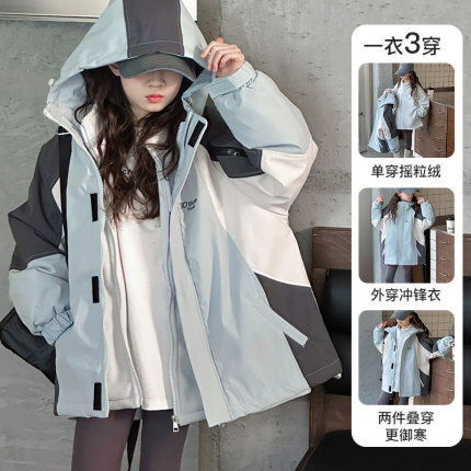 女童冲锋衣三合一可拆卸2025新款儿童加厚秋冬装大童女孩三防外套
