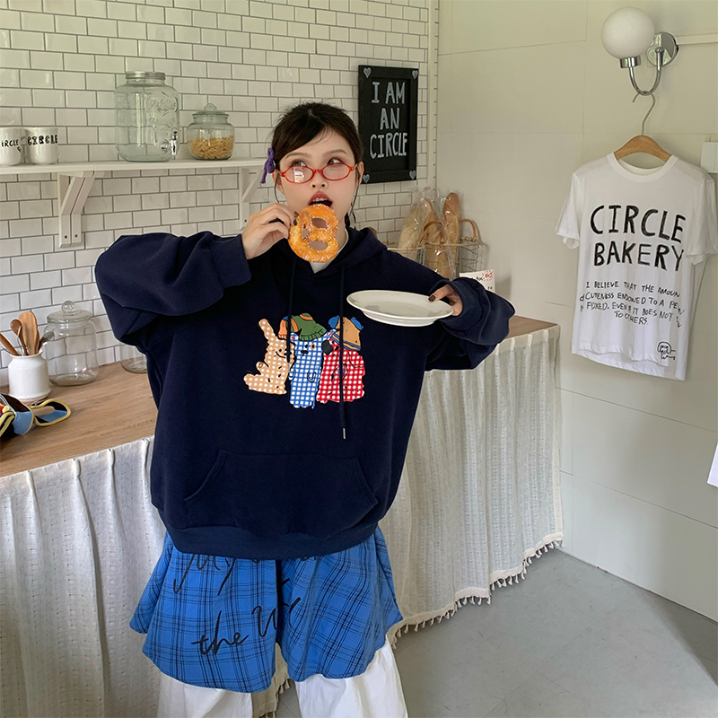 2025胖晶晶大码女装卫衣秋冬可爱印花宽松型连帽卫衣 加绒加厚