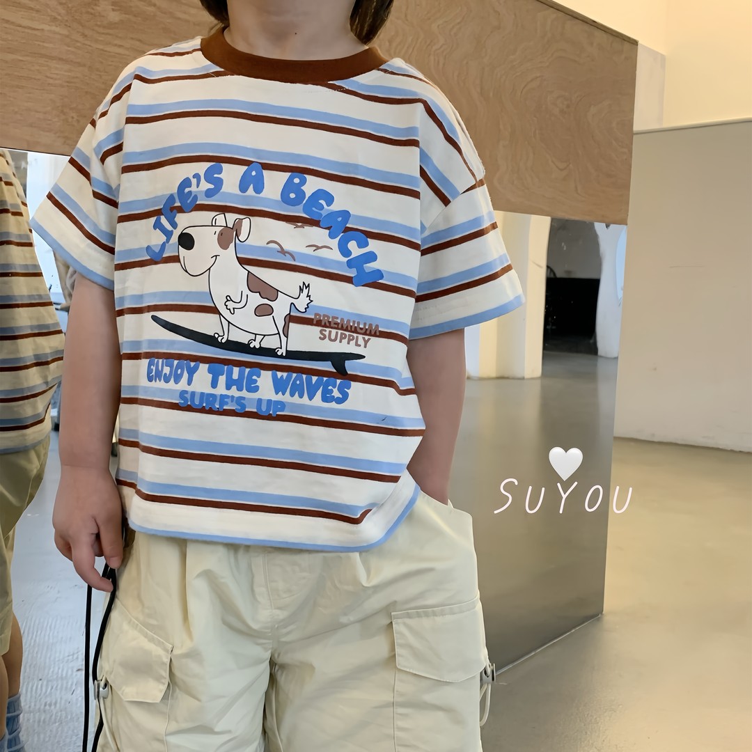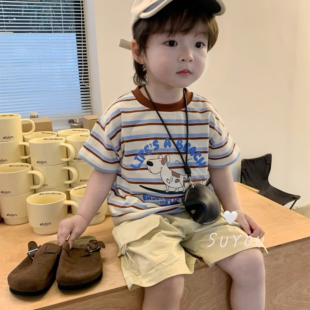 男童短袖t恤新款儿童夏季条纹圆领薄款半袖中小童夏装体恤衫T百搭