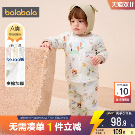 巴拉巴拉宝宝内衣套装婴儿纯棉睡衣冬季新款儿童高腰保暖夹棉加厚