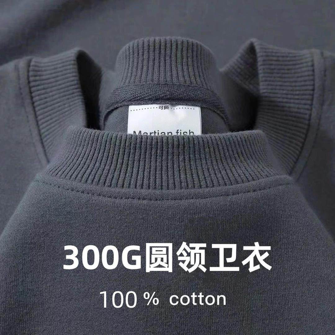 【300克】100%重磅纯棉毛圈男士圆领卫衣春秋宽松大码长袖加厚打