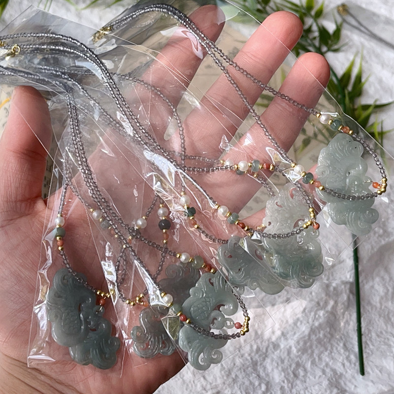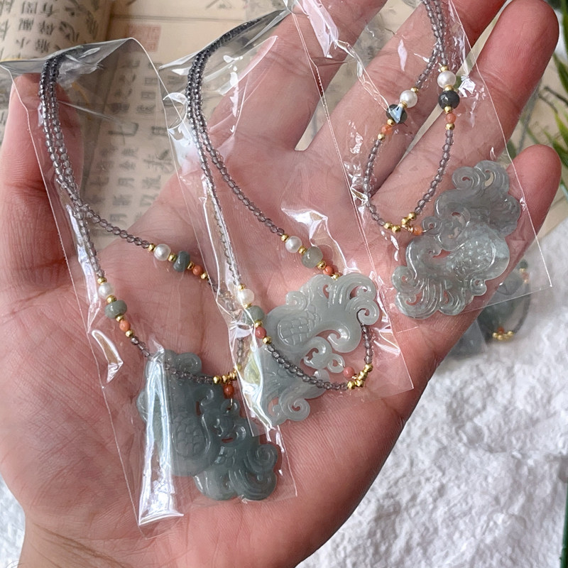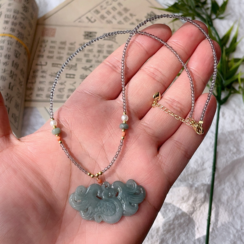 带水头!复古千金小姐 天然翡翠蓝水凤凰项链一条