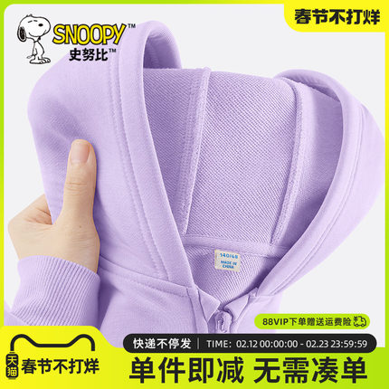 史努比儿童外套春秋女大童紫色连帽开衫女孩休闲上衣洋气女童秋装