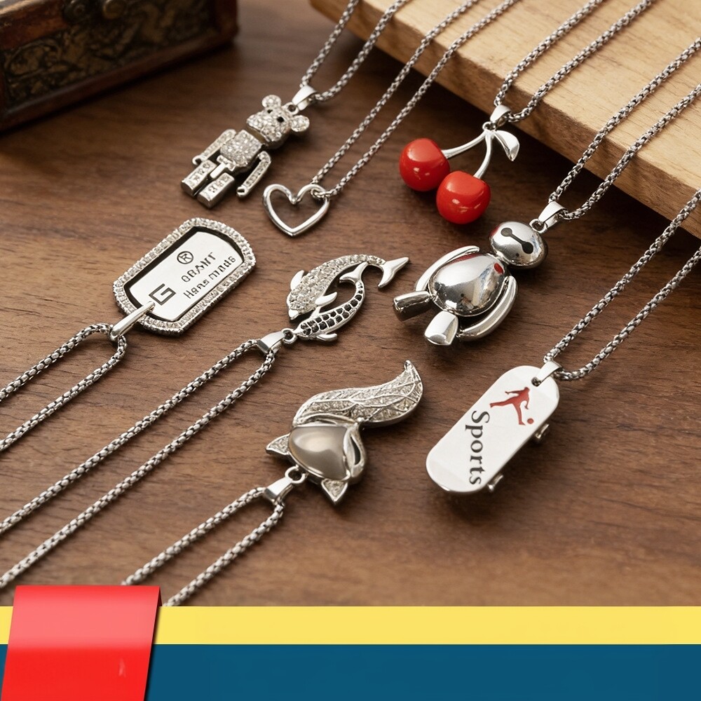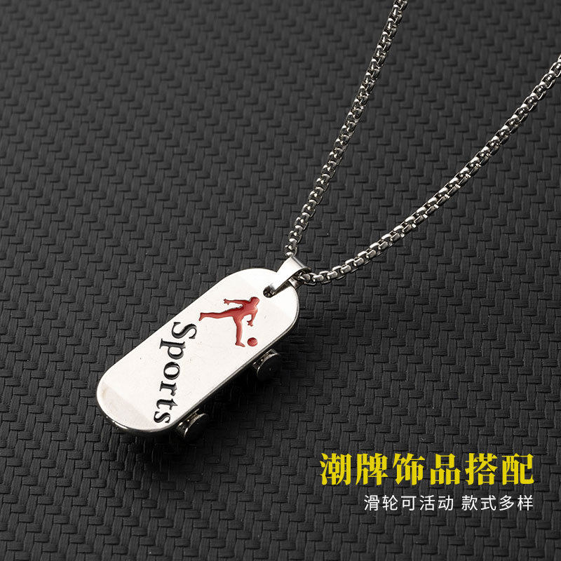 潮流钛钢项链男女抖音蹦迪嘻哈大白吊坠毛衣链简约嘻哈饰品 跨境