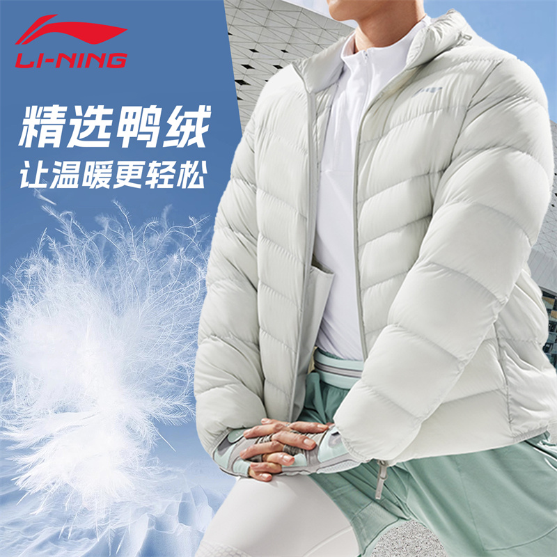 李宁羽绒服男2025冬季新款运动时尚轻薄健身短款修身鸭绒立领外套