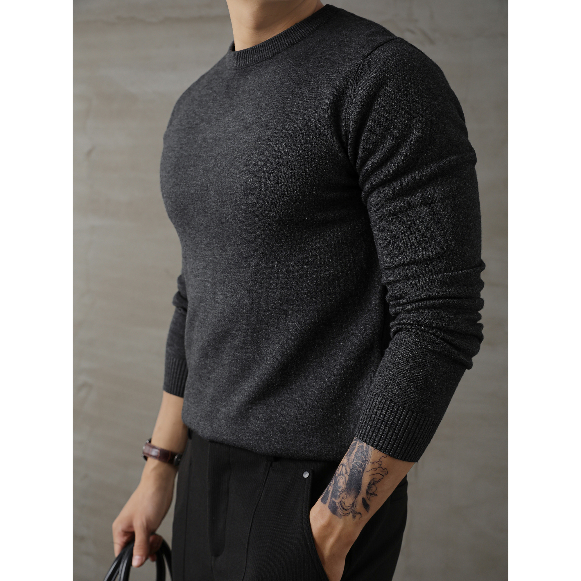 LUUD 秋冬季圆领毛衣男士商务通勤长袖毛衫轻熟设计感针织打底衫