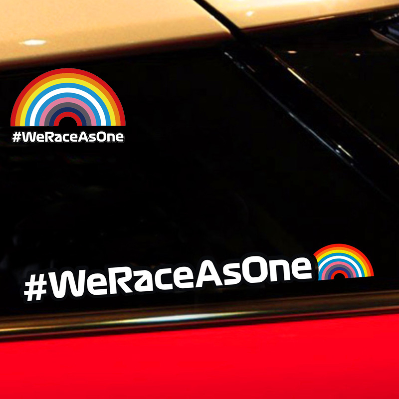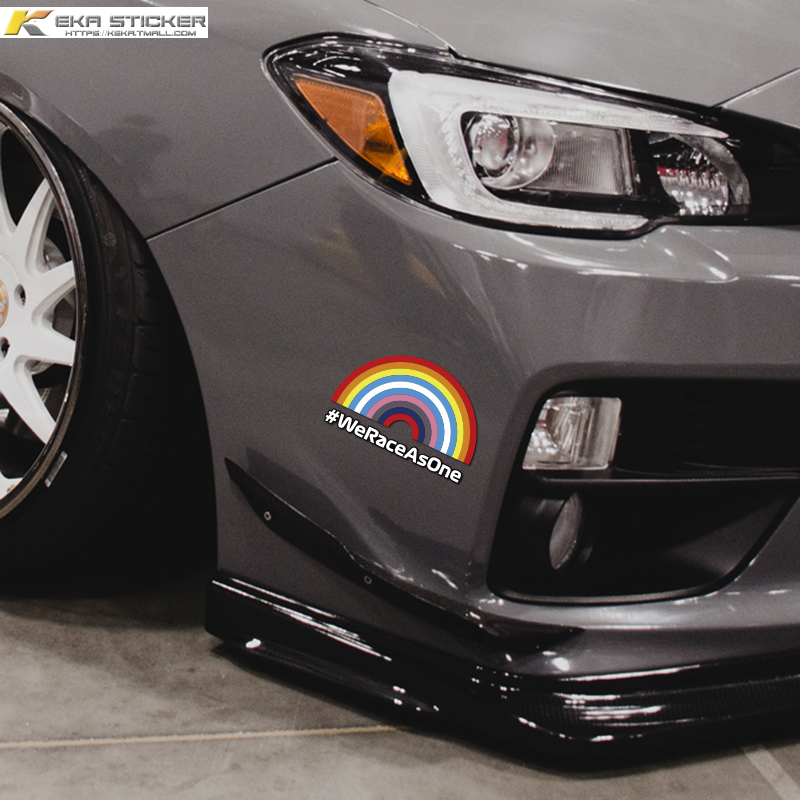 彩虹F1安全警示反光网红车身车窗个性汽车贴纸摩托电动车头盔车贴