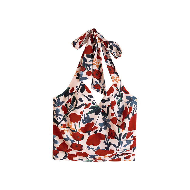 花色性感吊带挂脖上衣
