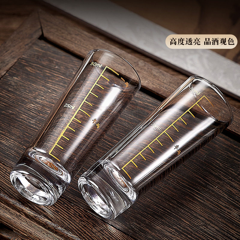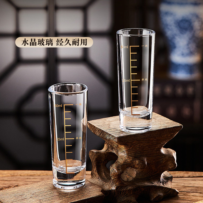 轻奢白酒杯家用套装刻度直筒小酒杯一口杯一两杯子弹杯分酒器酒具