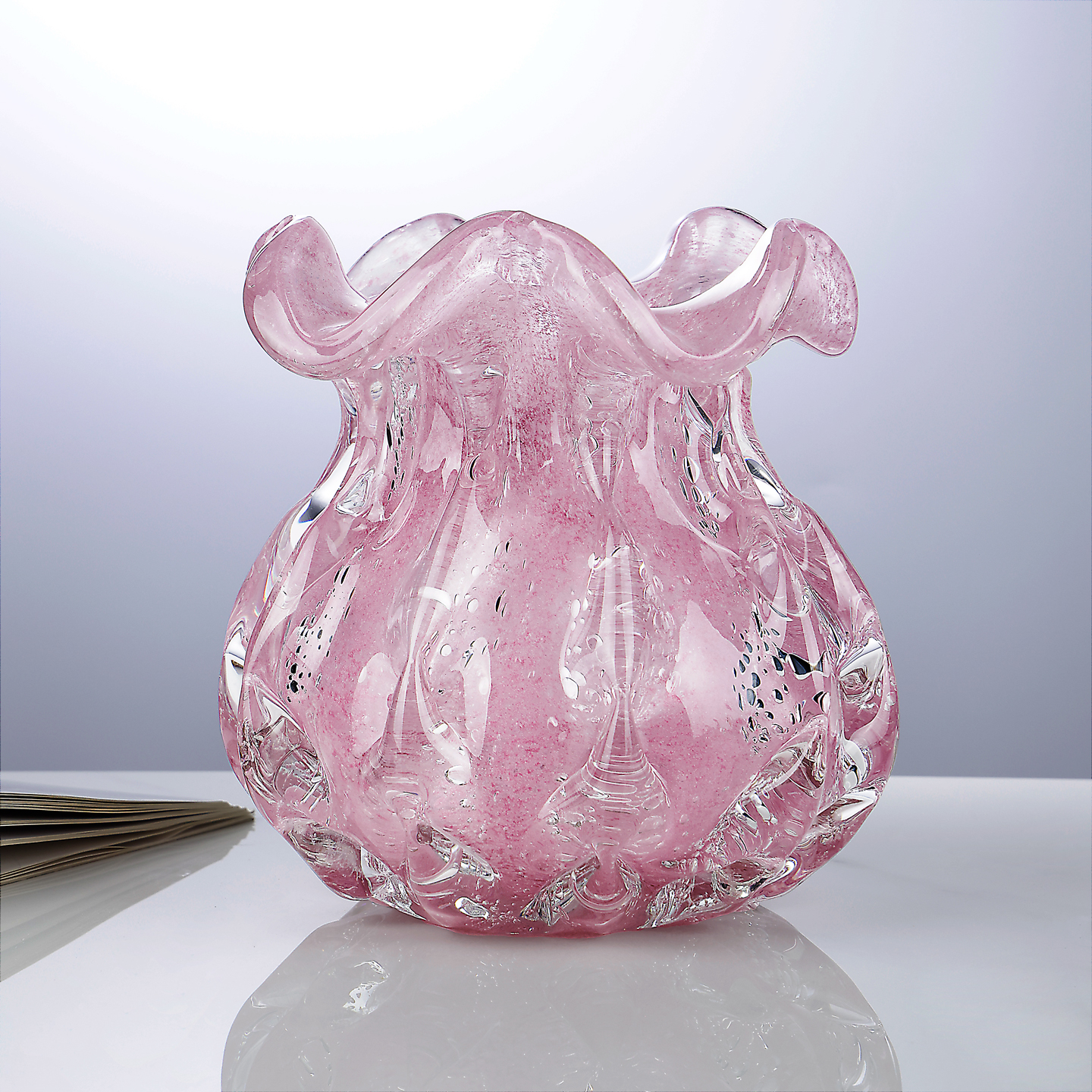 轻奢粉色钱袋子琉璃花瓶艺术客厅摆件水养插花装饰品玄关桌面花器
