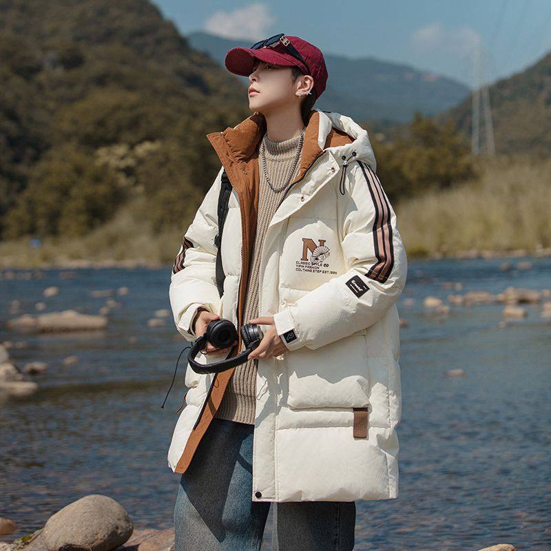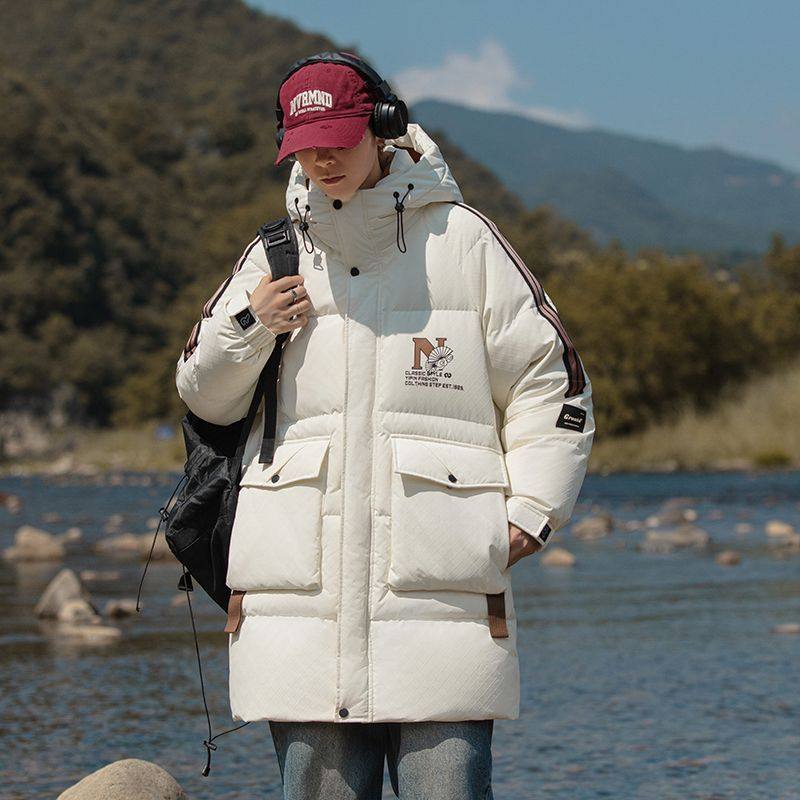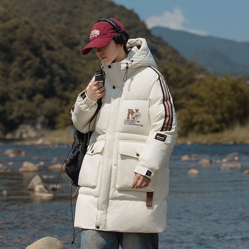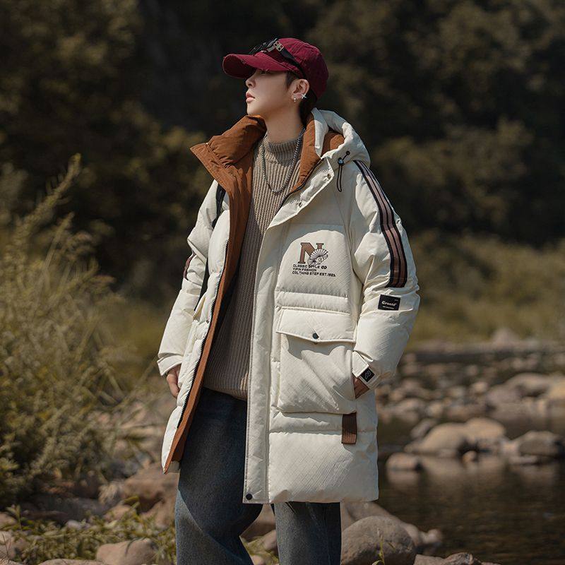 秋冬新款青少年中长款羽绒服工装外套男时尚潮流加厚保暖羽绒服