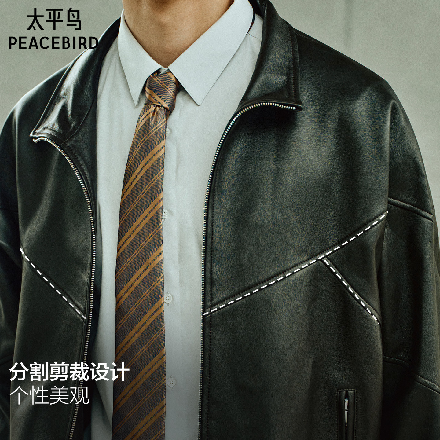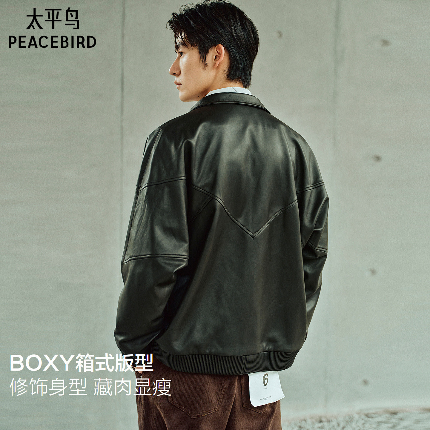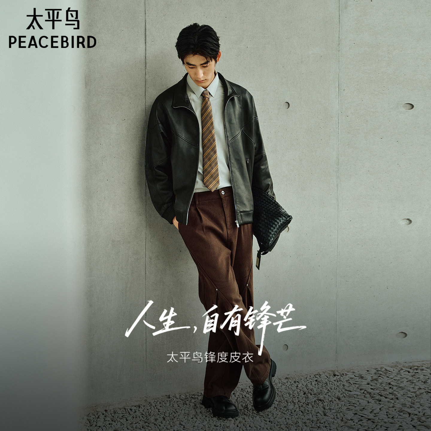 【锋度皮衣】太平鸟男装绵羊皮立领夹克棕色真皮外套B1BDF4F01