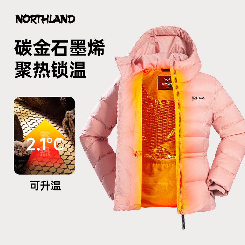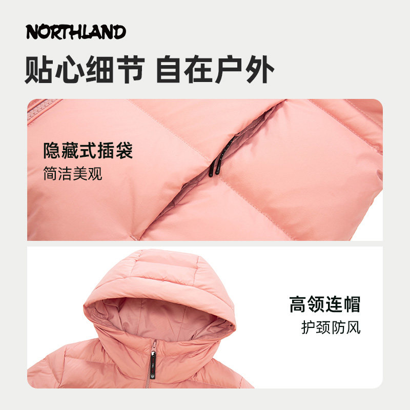诺诗兰2025秋冬新款90鹅绒羽绒服防风保暖户外徒步连帽外套女