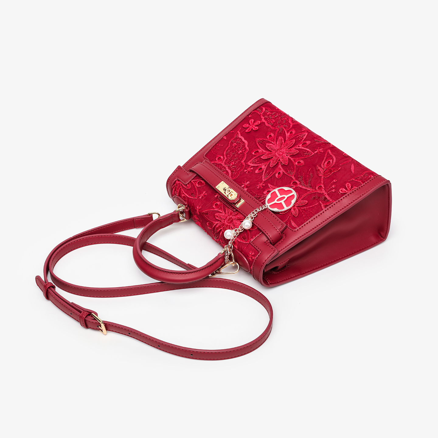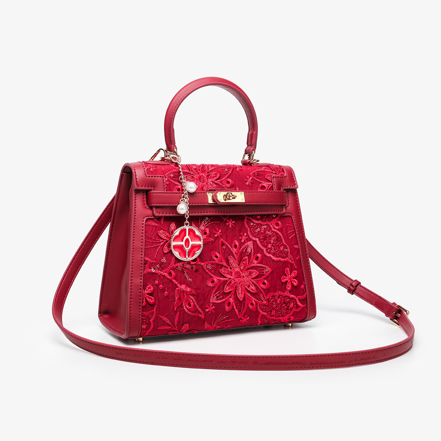 蕾丝复古红色新娘手提包本命年鸿运凯莉包喜庆礼物包生日宴会女包