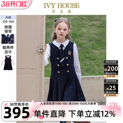 IVY HOUSE常春藤儿童装女童秋季款 学院风假两件撞色连衣裙亲子装