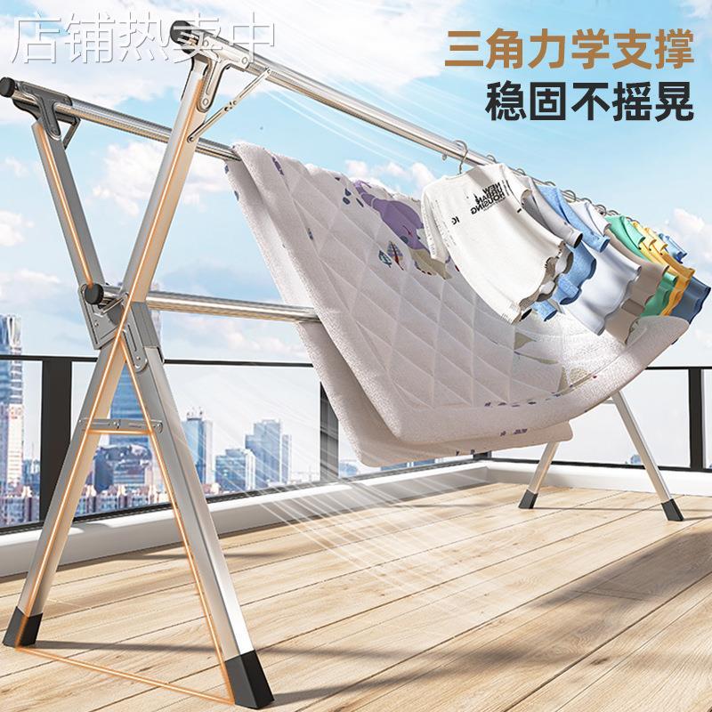 不锈钢折叠晾衣架落地室内外阳台卧室凉衣架家用晾衣杆晒被子