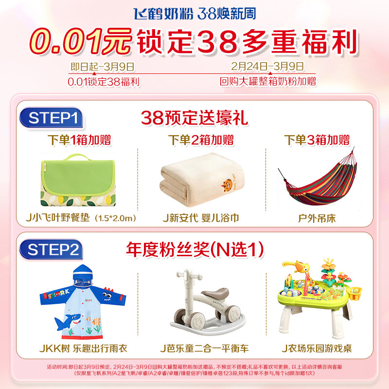 消费券】飞鹤星飞帆3段奶粉婴幼儿牛奶粉三段700g6罐官方正品
