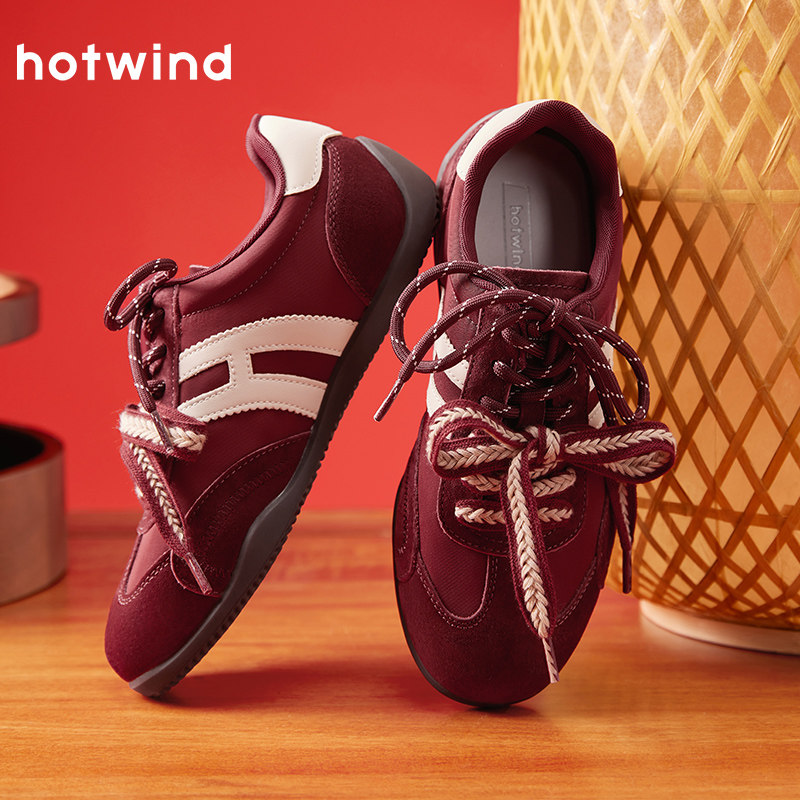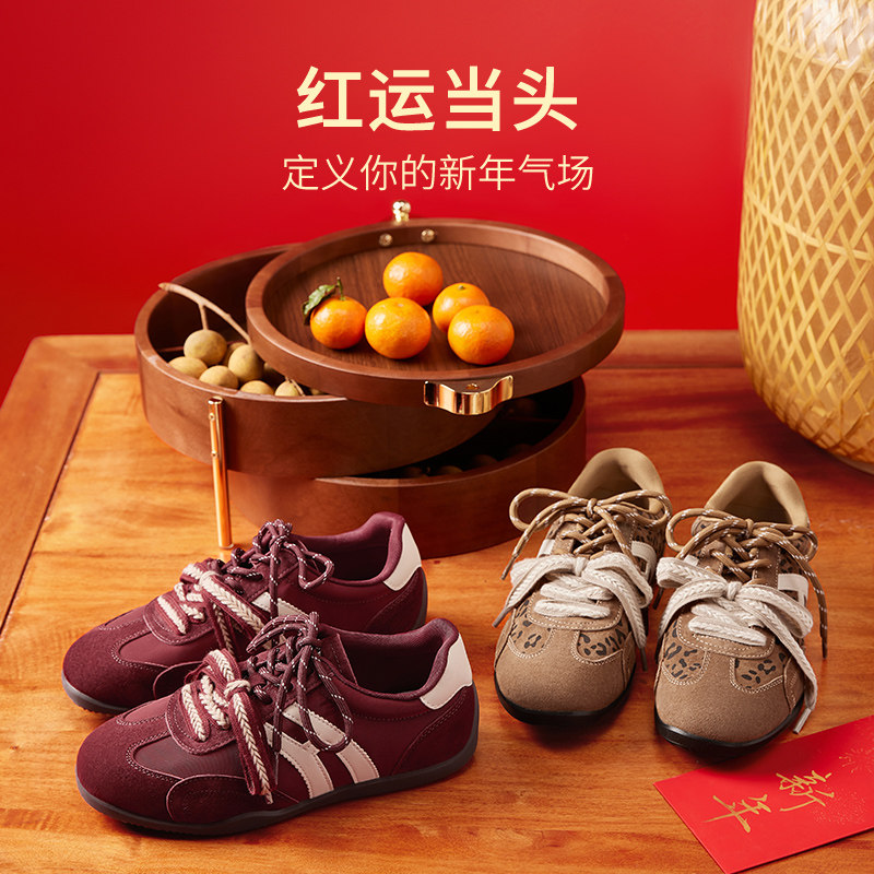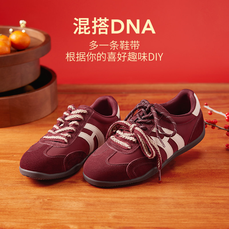 热风红色德训鞋女2026年春季新款赛车鞋百搭休闲鞋双鞋带新年女鞋